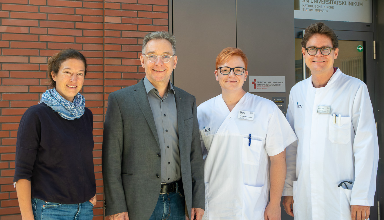 Ergänzt wird die Tätigkeit der Seelsorgerinnen und Seelsorger im UKM auch durch ehrenamtliche Studierende, die in einzelnen Bereichen mitarbeiten – etwa in der onkologischen Tages-klinik oder auf den Kinderstationen.