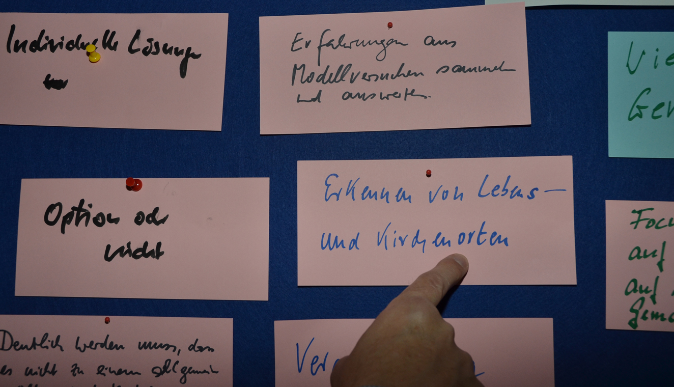 Bildunterschrift: Die Pfarrer sammelten Gedanken zu neuen Leitungsmodellen in Pfarreien. Bild: Bischöfliche Pressestelle / Dr. Stephan Kronenburg