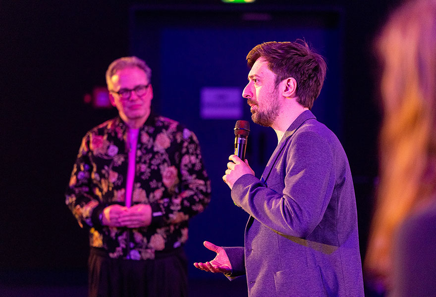 Ein Höhepunkt ist jedes Jahr die Verleihung des Ökumenischen Filmpreises am Samstagabend. In diesem Jahr ging er an den nordmazedonischen Film „DJ Ahmed“, der von zwei Brüdern in einem abgelegenen Dorf erzählt. Ahmet und sein jüngerer Bruder Naim, die die Begeisterung für Musik von ihrer verstorbenen Mutter geerbt haben, finden ihren eigenen Weg zwischen Trauer, Freiheitsdrang und einer Liebe, die gesellschaftliche Grenzen herausfordert. Neben eindrucksvollen Panoramabildern und stillen, ernsten Momenten lebt der Film auch von zahlreichen humorvollen Szenen. „Dass diese persönliche Geschichte so viele Menschen erreicht, macht mich unendlich dankbar. Und dass der Humor auch Sie anspricht, zeigt, dass wir alle Menschen sind und dass das, was uns verbindet, viel stärker ist als das, was uns trennt“, sagte Regisseur Georgi M. Unkovski bei der Preisverleihung. Im anschließenden Filmgespräch erzählte er von der Entstehung seines Films und der engen Verbindung zu den Dorfbewohnern, die daran mitwirkten.