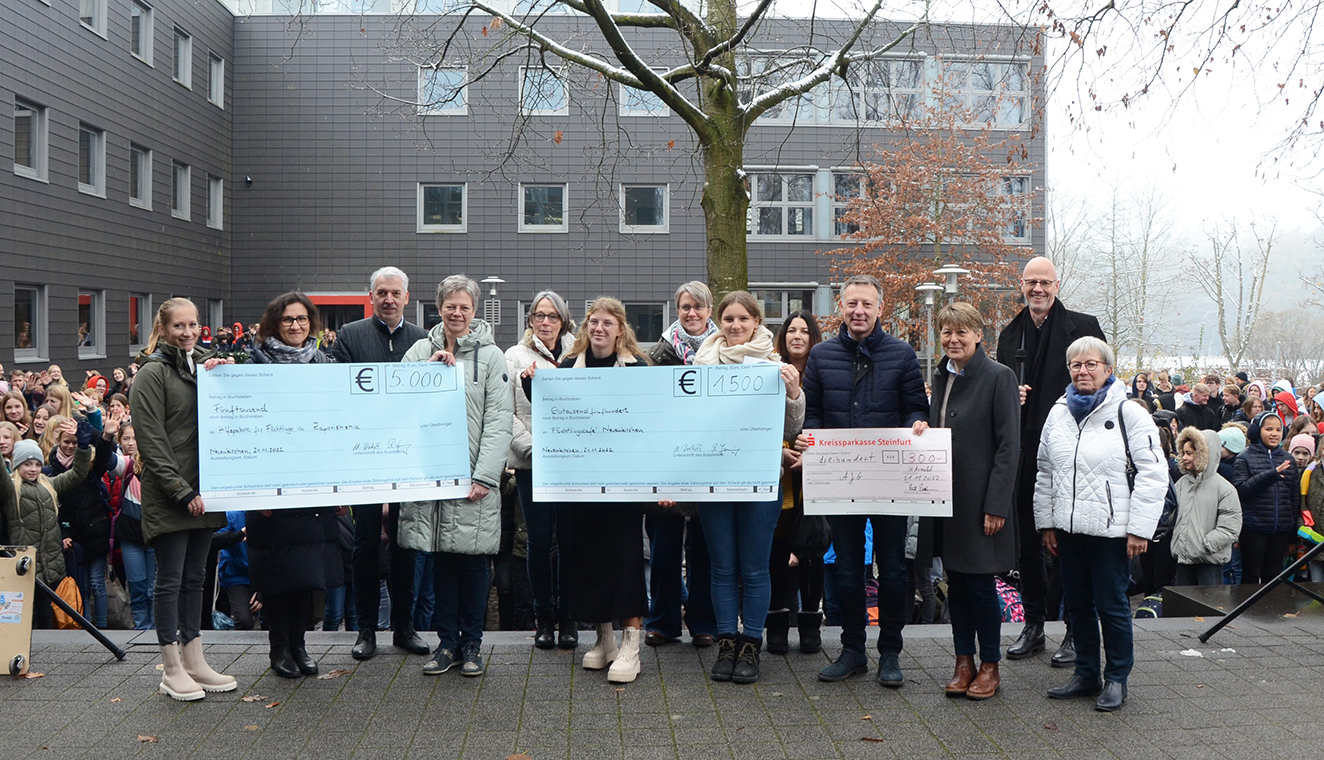 Die beiden Projekte haben Schüler, Lehrer und Eltern gemeinsam ausgesucht, wie SV-Lehrerin Melanie Hüwe und zwei Schülerinnen erklärten. Wichtig war allen, dass durch die Spenden die Arbeit mit und für Geflüchtete unterstützt werde.