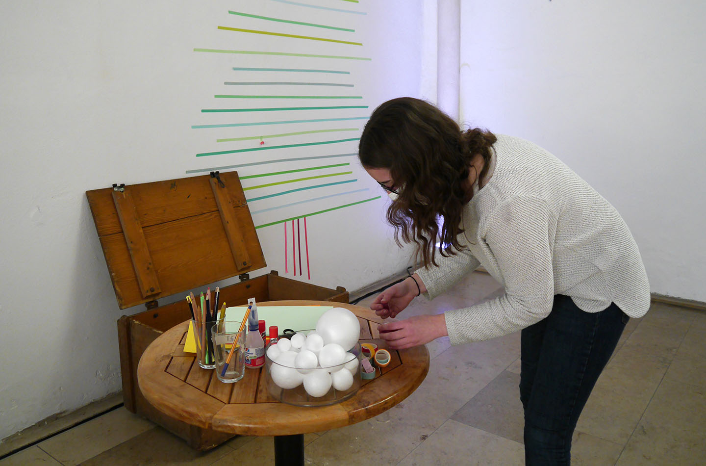 An einer Stationen können die Besucherinnen und Besucher Weihnachtskugeln gestalten.