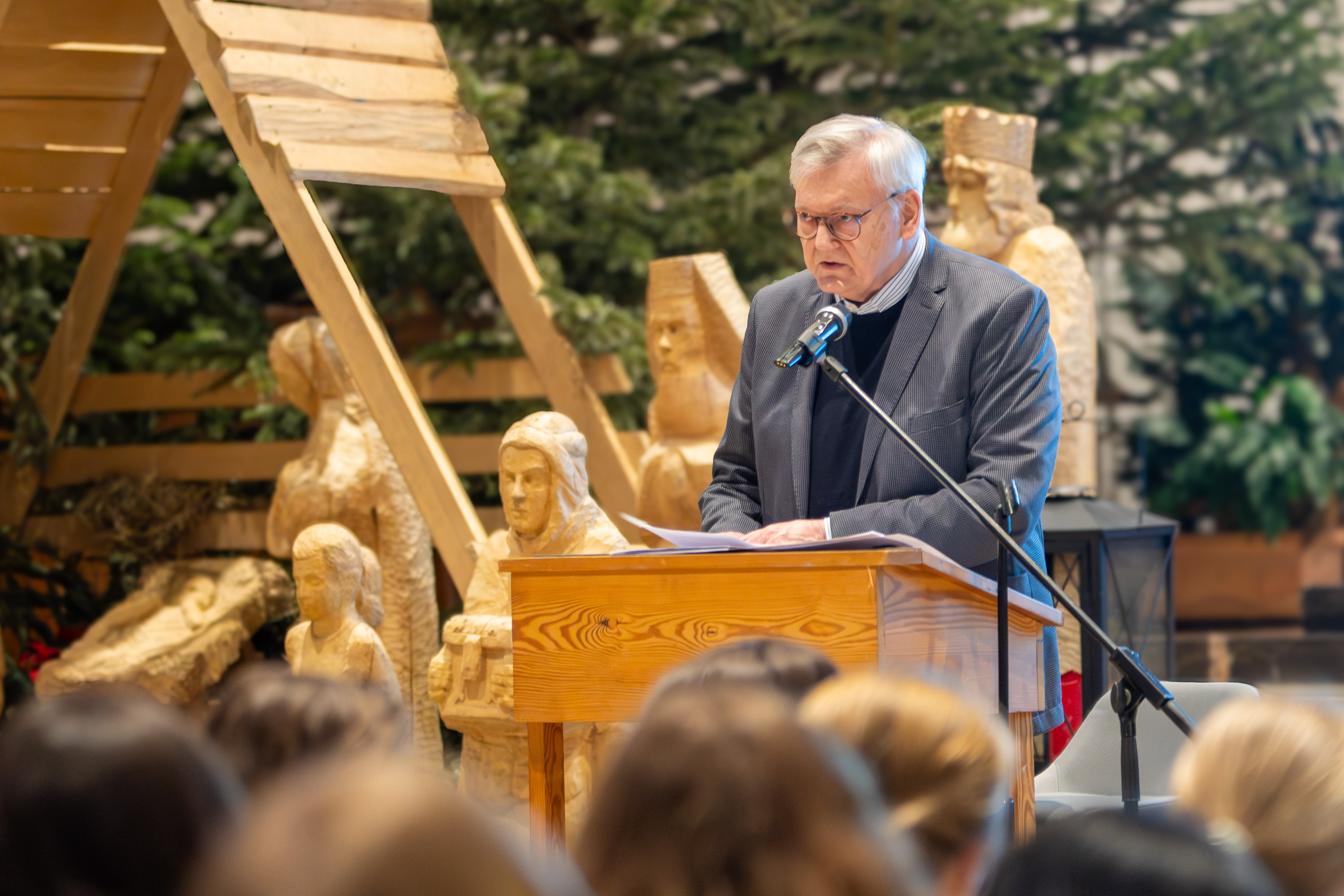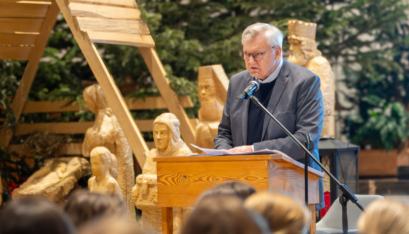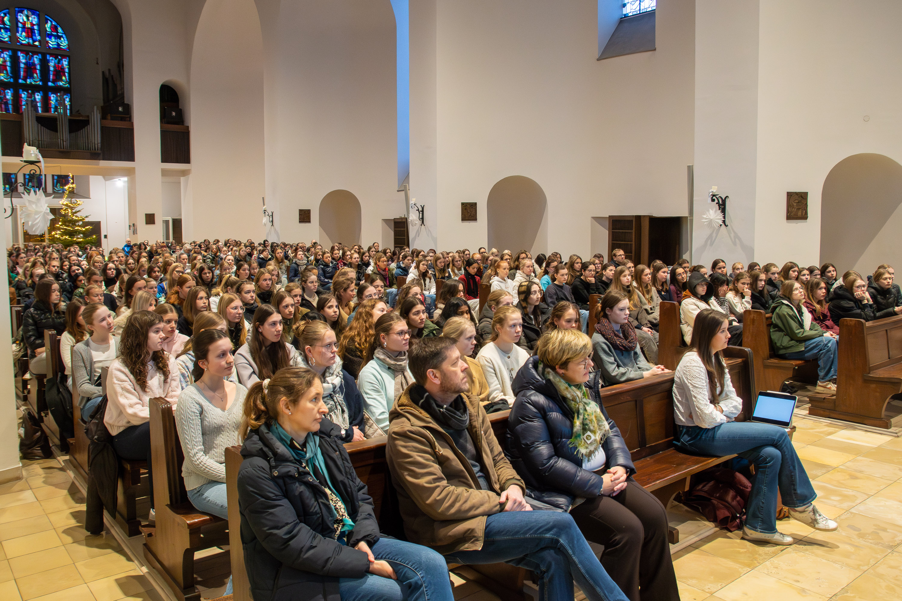Es ist ungewöhnlich still an diesem Morgen in der Antoniuskirche in Münster. Rund 400 Schülerinnen der bischöflichen Marienschule sitzen dicht gedrängt in den Bänken, niemand flüstert, niemand schaut auf sein Handy. Als Dr. Hans Gummersbach kurz die Stimme bricht, ist nur das leise Rascheln von Jacken zu hören. Erinnerung ist in diesem Moment nicht abstrakt – sie ist spürbar.