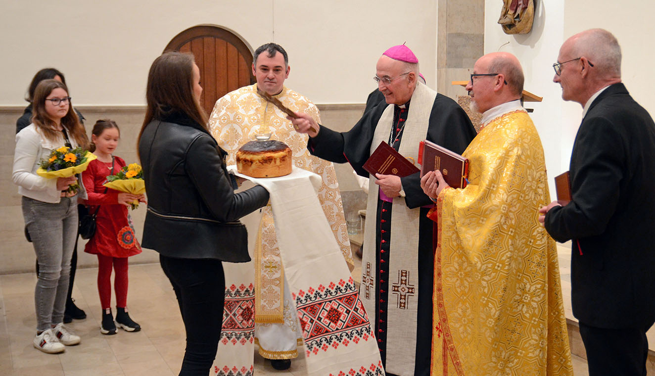 Genn ging auch auf die politische Situation in der Ukraine ein. Nicht nur mit Blick auf die Geschichte der Verfolgung, sondern auch auf die gegenwärtige, schwierige politische Situation, sei das Gebet notwendig, damit nicht die Gewalt, sondern der Frieden siege. „Nehmen Sie diesen Besuch als ein Zeichen unserer Solidarität und unsere Verbundenheit mit Ihnen und mit Ihren Familien hier und in Ihrer Heimat“, betonte der Bischof.