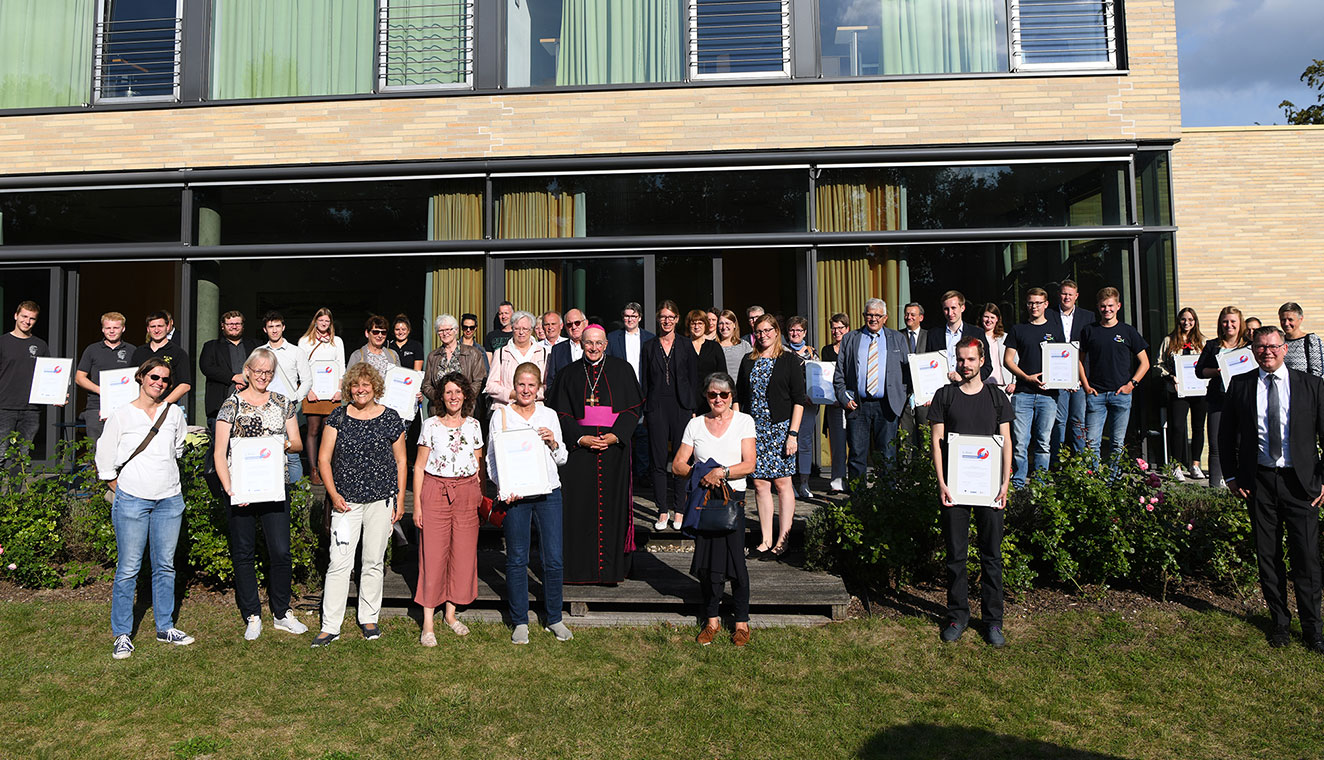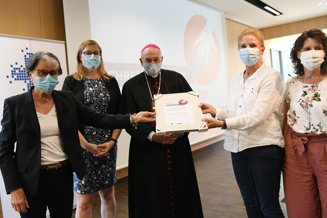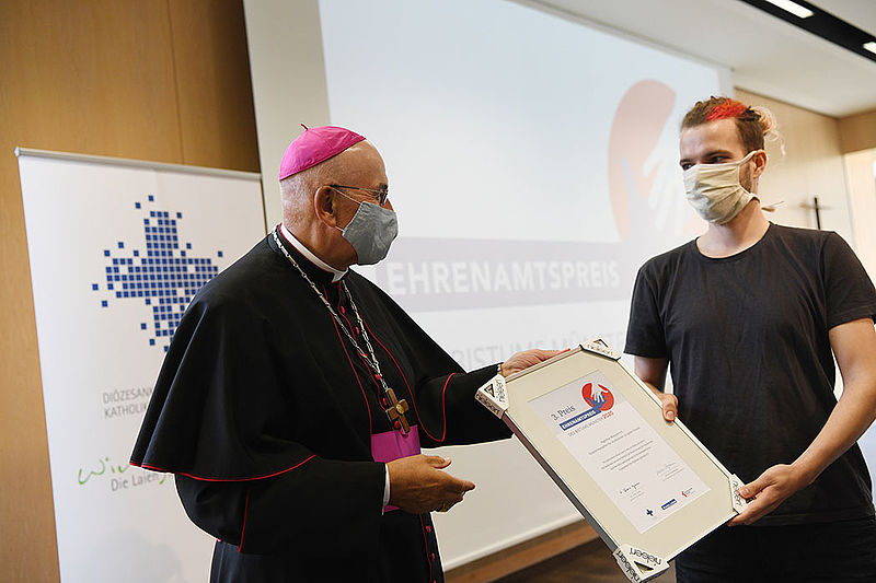 Mit einem Sonderpreis wurden zudem 18 Corona-Initiativen ausgezeichnet. Bischof Genn sagte in seiner Laudatio, er sei stolz auf diejenigen, die sich dabei ehrenamtlich engagierten. „Die 18 ausgezeichneten Gruppen stehen stellvertretend für alle, die gerade vor dem Hintergrund der Corona-Situation für andere tätig wurden und noch tätig sind. Sie stehen stellvertretend auch für sicher ganz viele, von deren Einsatz wir gar nichts wissen, weil er im Verborgenen stattfindet.“