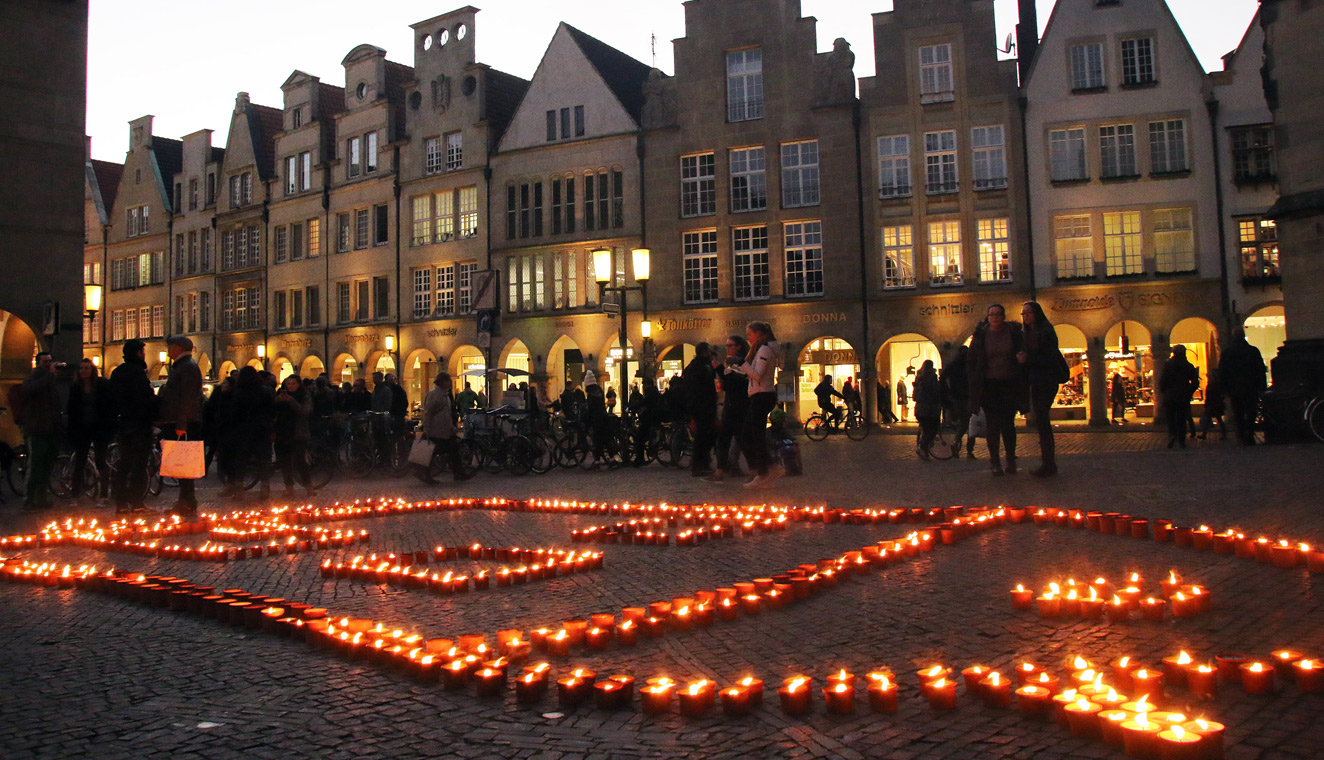 Foto: Auch in Münster wie in weiteren elf Orten der Diözese Münster leuchten die Kerzen als Zeichen der Solidarität. (Foto: Harald Westbeld/Caritas Münster)