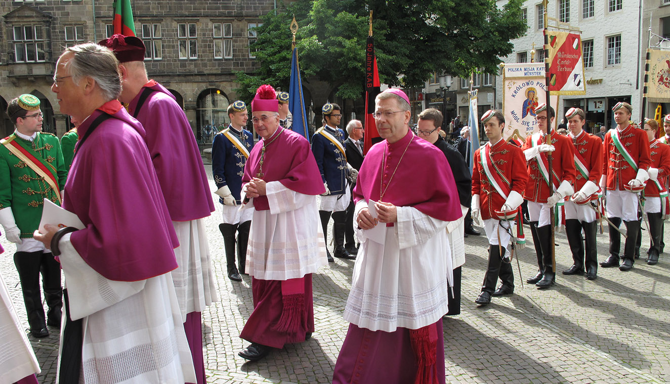 Die Teilnehmer beginnen die Prozession mit der Statio in der St. Lamberti-Kirche. Der Stationsgottesdienst dort beginnt um 10 Uhr. Danach zieht die Prozession über die Salzstraße, Klosterstraße, Verspoel, Ludgeristraße und Prinzipalmarkt zum Domplatz. Im St.-Paulus-Dom wird Bischof Dr. Felix Genn um 11 Uhr eine Heilige Messe feiern. .Die 10-Uhr-Messe im Dom fällt an diesem Tag aus.