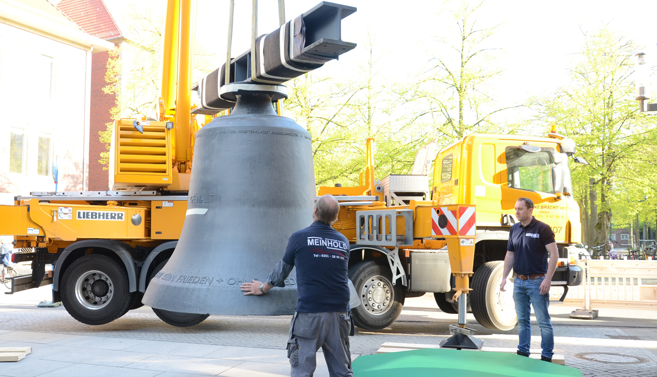 Mit der Friedens- und Freiheitsglocke Dessau kommt ein Ausstellungsstück vor das LWL-Museum für Kunst und Kultur in Münster, das deutsche Geschichte geschrieben hat. Fachmännisch wurde die Glocke am 19. April vor dem Museumseingang am Domplatz angeliefert und aufgebaut.