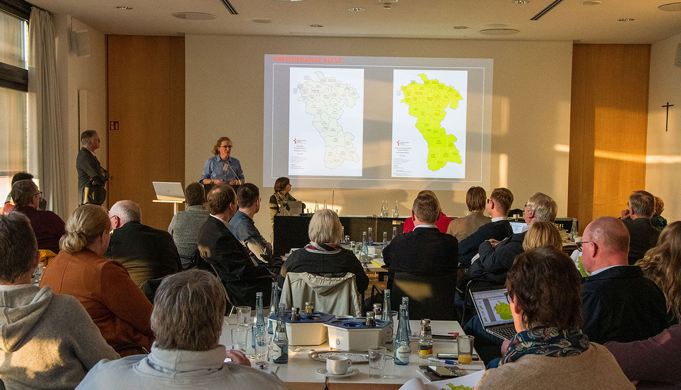 Generalvikar Dr. Klaus Winterkamp und Daniel Gewand, Geschäftsführer des Prozesses zur Entwicklung pastoraler Strukturen im Bistum Münster, erläuterten den Delegierten den aktuellen Stand zum Strukturprozess.