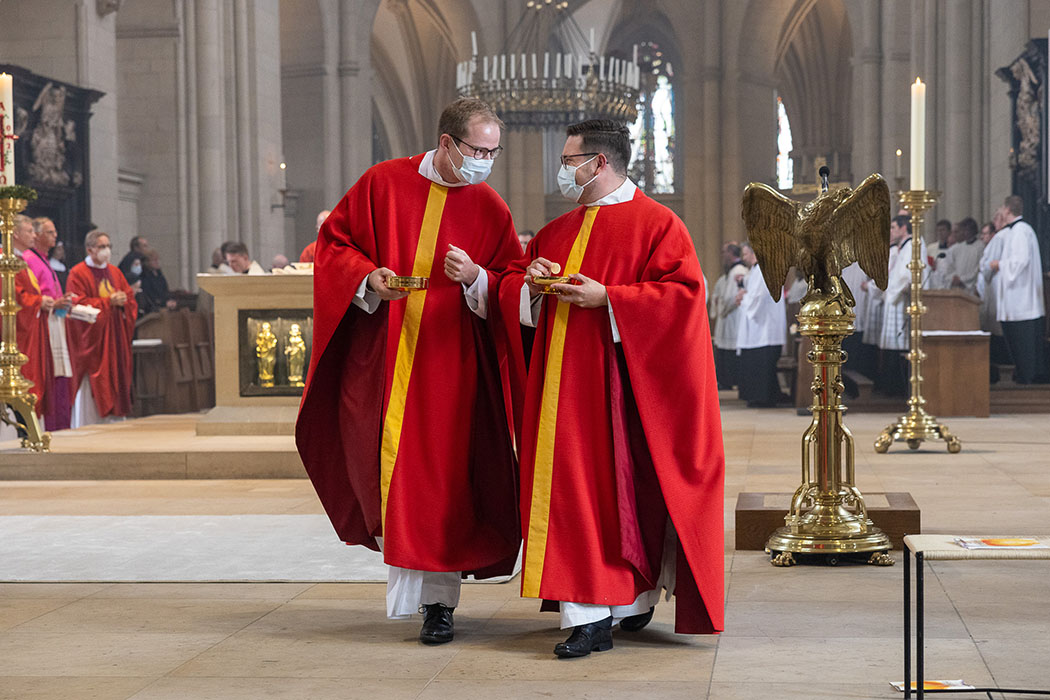 Die musikalische Gestaltung der Priesterweihe übernahmen unter der Gesamtleitung von Domkapellmeister Alexander Lauer Sängerinnen und Sänger des Domchores St. Paulus, ein Bläserensemble der Dombläser, eine Schola des Klarissenkonvents am Dom sowie Domorganist Thomas Schmitz.