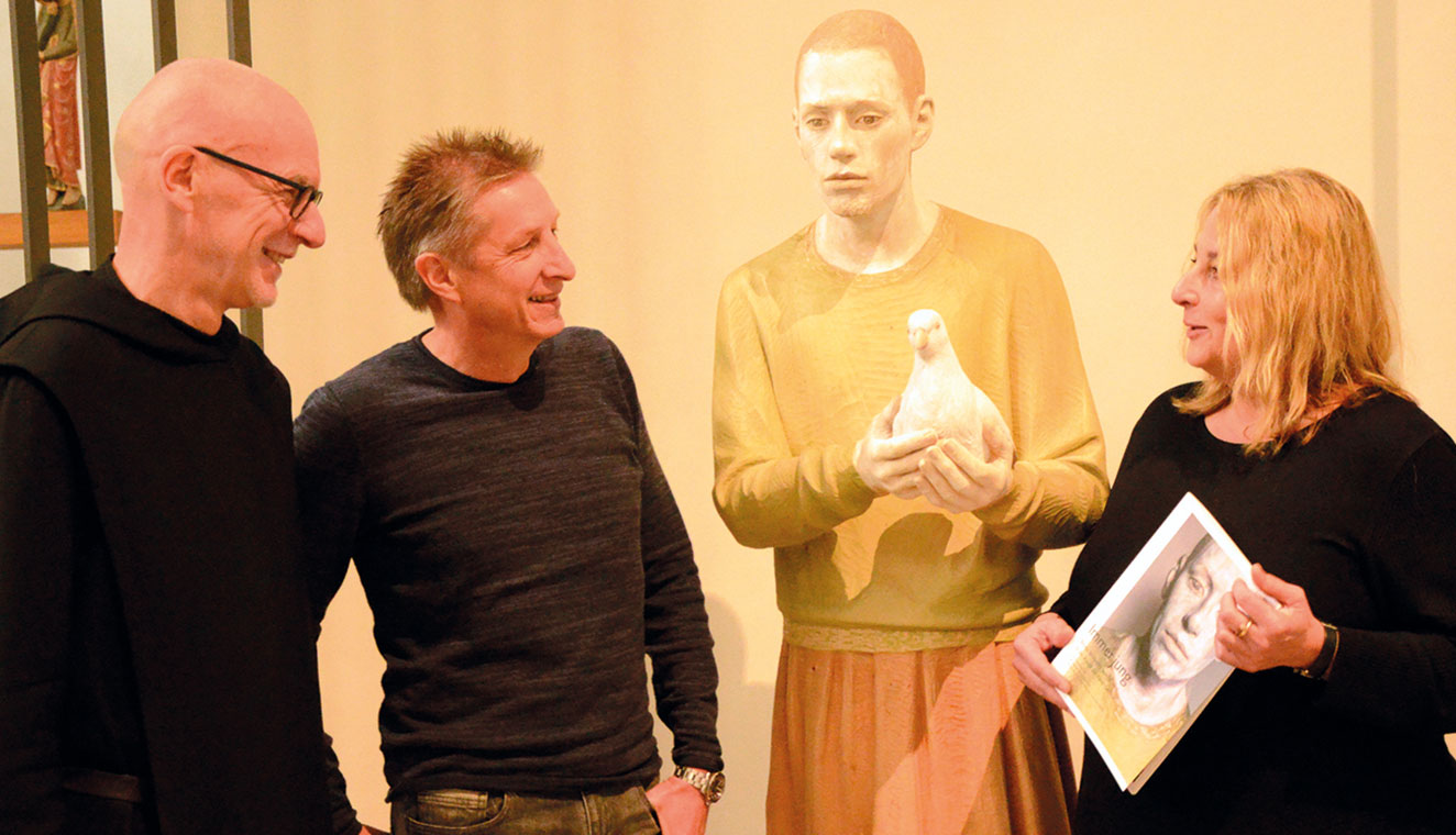 Gemeinsam haben Meyer zu Riemsloh, Pater Marcel und Schellschmidt nun ein kleines Buch herausgebracht, das sich auf 45 Seiten der Josefsdarstellung nähert. Unter dem Titel „Immer jung“ finden sich textliche und fotografische Annäherungen sowie ein Interview mit dem Künstler Bruno Walpoth. „Über das Heft möchten wir den Menschen diese Josefsstatue näher bringen und ihre Herzen erreichen“, hofft Pater Marcel. Das Buch ist ausschließlich in der Klosterbuchhandlung erhältlich und kostet 6,90 Euro. Einen Einblick gibt es auch auf der Internetseite www.joerg-schellschmidt.de/Josef/