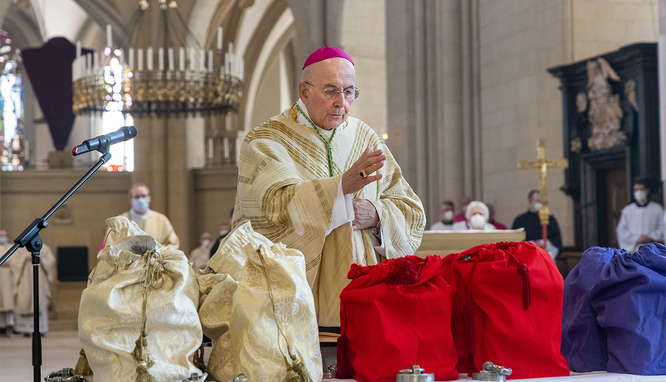 Bildunterschrift: Bischof Felix Genn bei der Weihe der heiligen Öle. Foto: Bischöfliche pressestelle / Achim Pohl