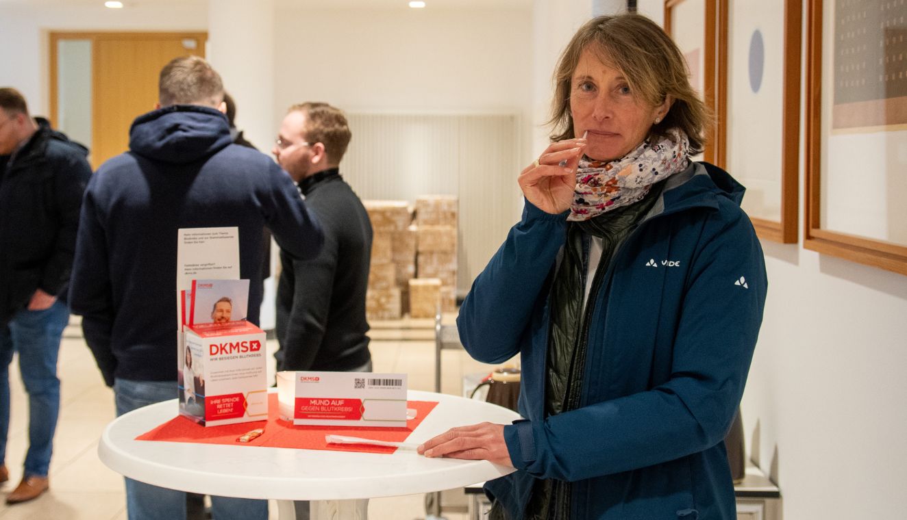 Die Aktion fand in Zusammenarbeit mit der gemeinnützigen DKMS Donor Center gGmbH statt. Innerhalb weniger Minuten ließen sich die Teilnehmenden registrieren, indem sie bei sich selbst einen einfachen Schleimhautabstrich im Mund durchführten. Danach genossen viele der Gäste Lebkuchen und Kaffee, die die Veranstalter in der Eingangshalle anboten.