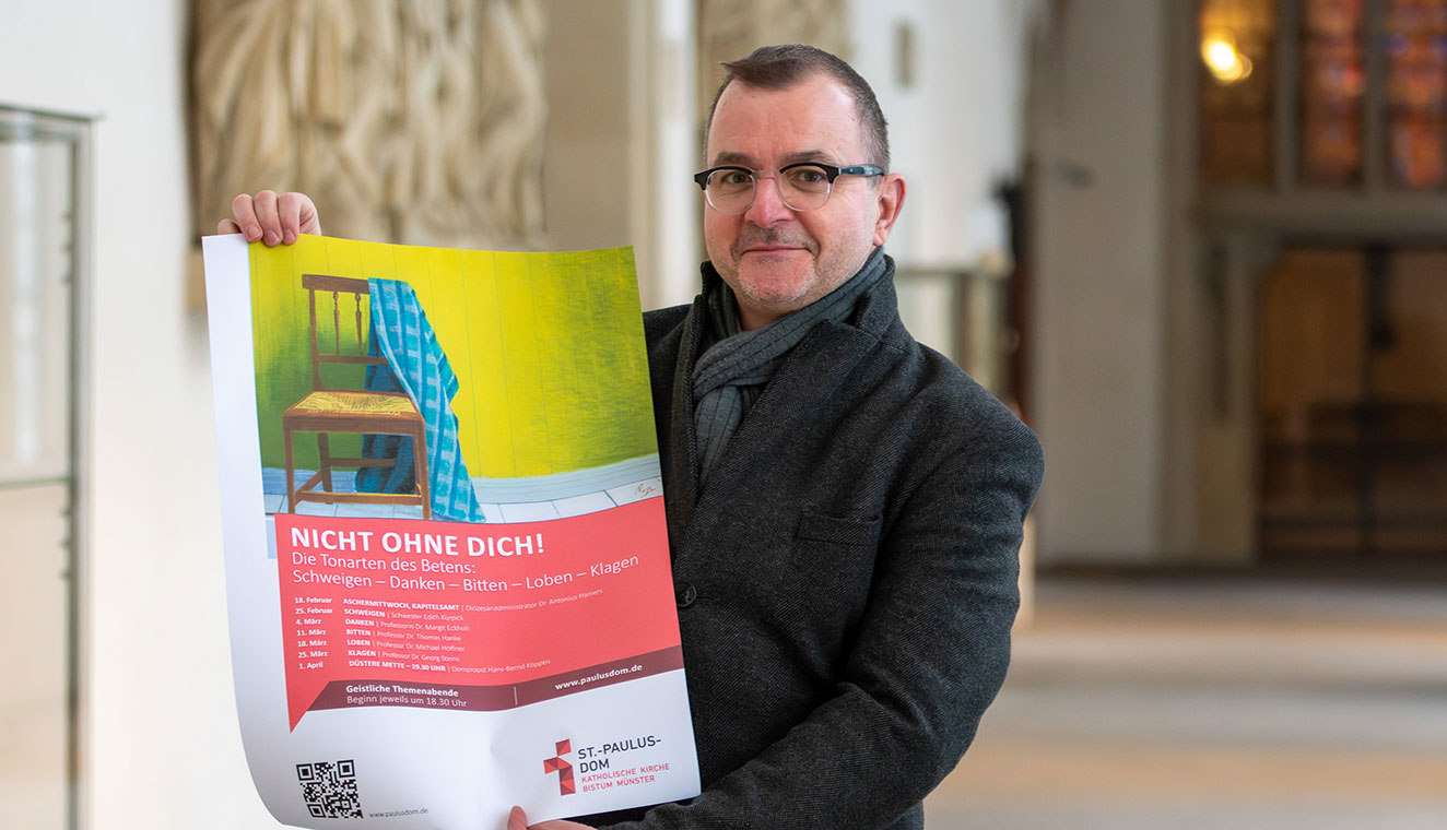 Höffner ist überzeugt, dass es heute einen gewissen Mut braucht, Gott im Alltag einen Platz freizuhalten. Darauf solle das Plakatmotiv zu den Geistlichen Themenabenden hindeuten. Denn betende Menschen stünden dazu, nicht selbstgenügsam zu sein. Sie müssten sich auf die Entdeckung einlassen, dass eine Welt mit Gebet nicht dieselbe ist wie eine Welt ohne Gebet. Dazu ermuntern könne ein Wort des früheren Aachener Bischofs Klaus Hemmerle: „Wo die Beter dazwischen sind, da sind andere Orientierungen, da sind andere Maßstäbe, da sind andere Kräfte im Spiel als in der geschlossenen Gesellschaft der Macher.“