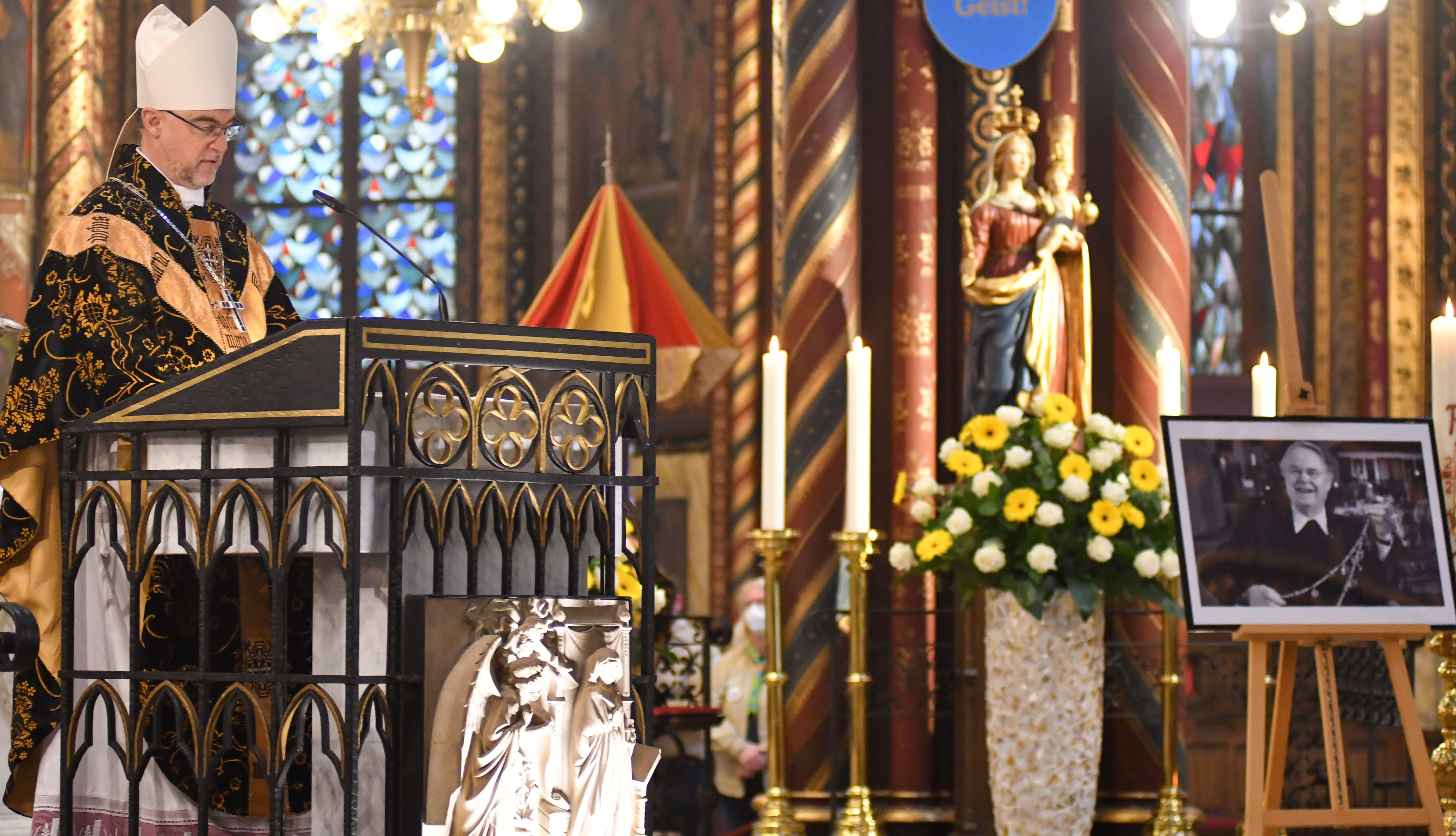 Bildunterschrift: Weihbischof Rolf Lohmann erinnerte sich in seiner Predigt an die Begegnungen mit Heinrich Janssen. Im Altarraum stand ein Foto des verstorbenen emeritierten Weihbischofs. (Foto: Bischöfliche Pressestelle / Gerry Seybert)