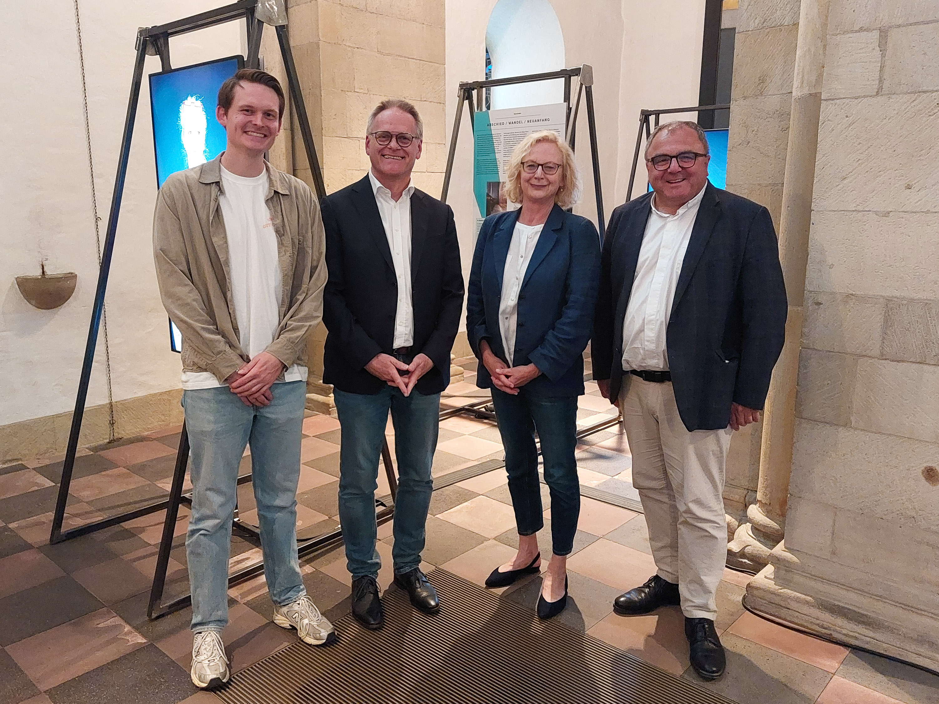 Freuen sich über die Ausstellung in der Ludgerikirche: (von links) Kurator der Ausstellung Felix Hemmers, Verwaltungsleiter Ulrich Fiege, Bürgermeisterin Maria Winkel, Pfarrer Hans-Bernd Köppen.