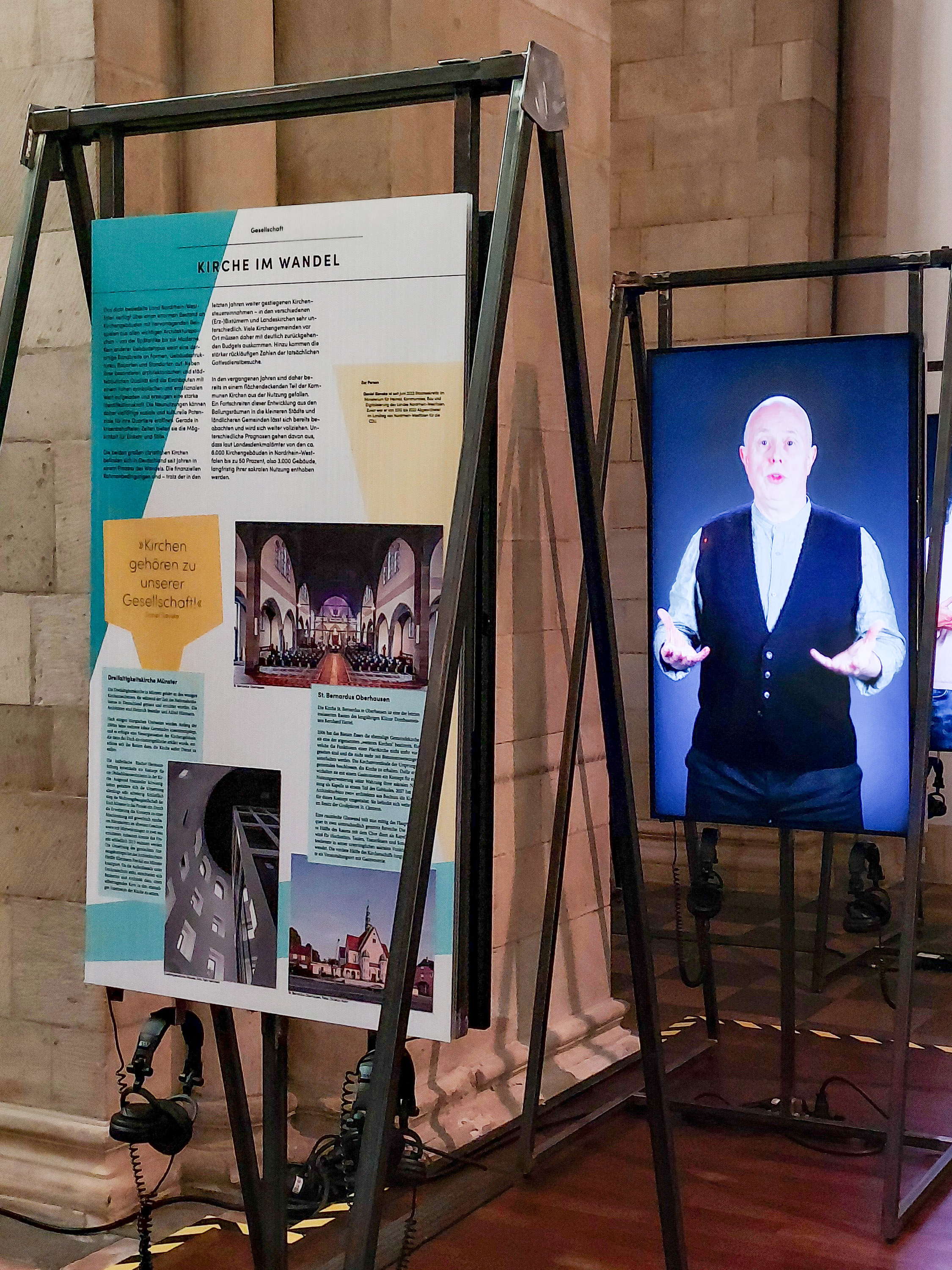 Die vom Verein Baukultur Nordrhein-Westfalen konzipierte Ausstellung zeigt auf Schautafeln gelungene Beispiele umgenutzter Kirchen. Ergänzt werden die Darstellungen durch Videointerviews mit Beteiligten solcher Prozesse – von Kirchenvorständen über Architekten bis hin zu Denkmalpflegern. Damit entsteht ein breites Bild der Chancen und Herausforderungen, die mit einer Umwidmung von Kirchen verbunden sind.