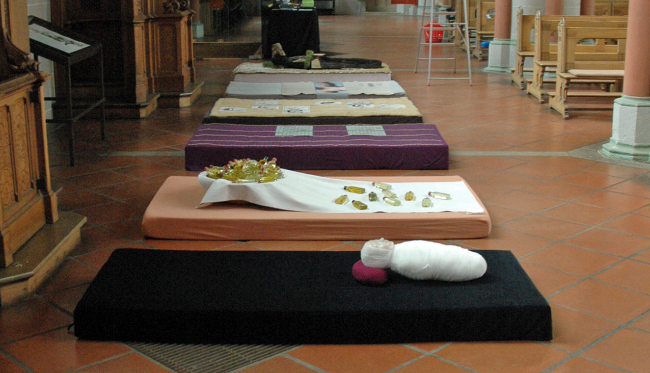 Fotografien der Kunstinstallation, die auf große Laken (1,20 m breit, 2,40 m lang) gedruckt worden sind, können im Kirchenraum oder an einem anderen passenden Ort auf dem Boden oder über Matratzen ausgebreitet werden. Ein Textheft bietet zu den sieben Stationen liturgische Anregungen für die Durchführung. Das Projekt lädt ein, den Lebens- und Leidensthemen von Frauen nachzuspüren, beispielsweise häusliche Gewalt, Demütigung, Salbung oder Empathie.