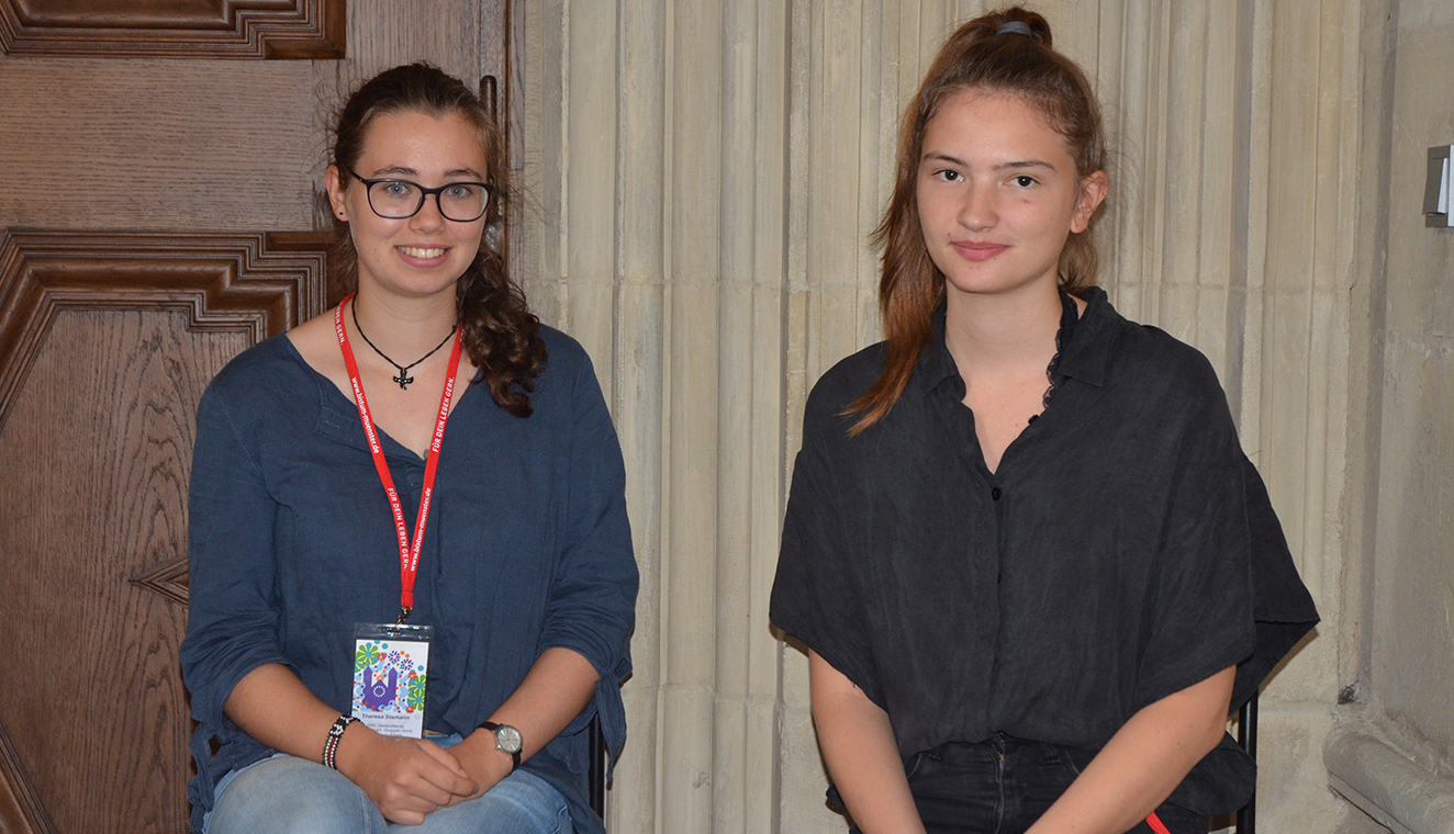 Als Freiwillige des Vereins ACR bieten (v.l.) Theresa Stehmann und Anna Babick kostenlose Domführungen auf Deutsch und Englisch an.