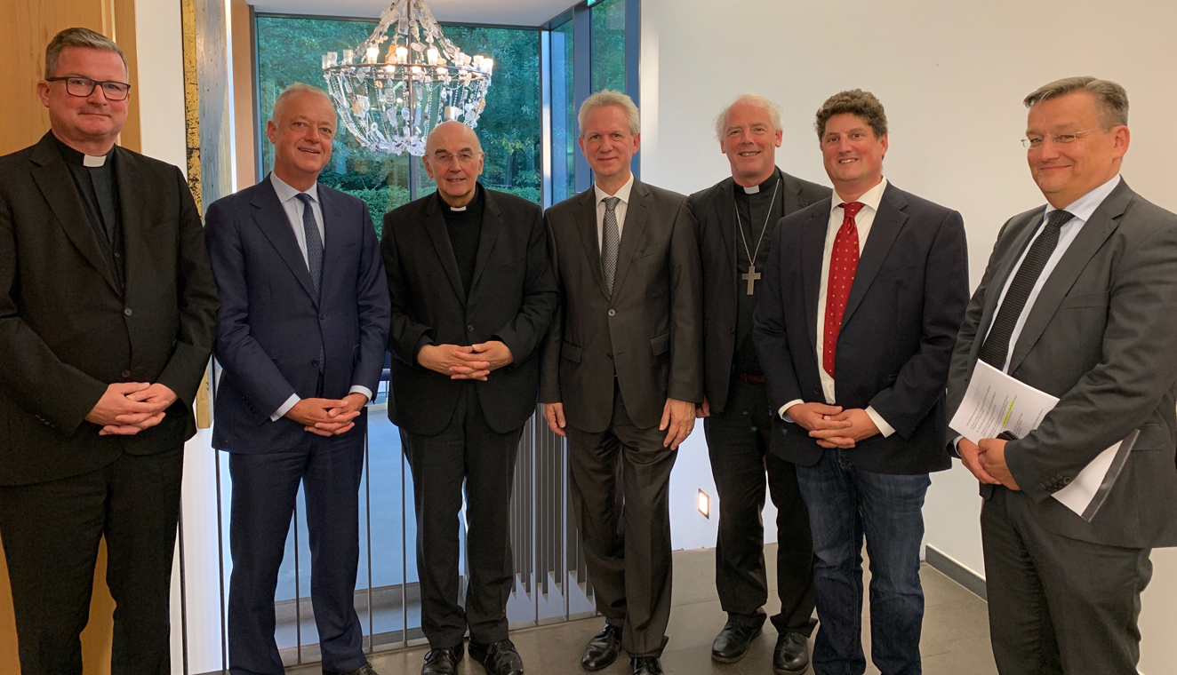 (Von links): Dr. Christian Stenz (Präses BKU Diözesanverband MS), DDr. Thomas Rusche (CAPP), Bischof Dr. Felix Genn, Antonius Kerkhoff (Akademie Franz Hitze Haus), Weihbischof Everard de Jong, Markus Classen (Vorsitzender BKU Diözesanverband Münster), Dr. Ralf Hammecke (CAPP).