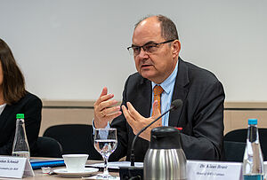 „Versöhnung, was die Grundlage für den gemeinsamen Aufbau einer Gesellschaft ist, ist in diesem Land noch nicht gegeben“, sagte Schmidt, der in seiner Funktion als Hoher Repräsentant über die Einhaltung des Daytoner Friedensabkommens wacht, das 1995 den Krieg beendete. Hoffnung für die Nachkriegs- und Transformationsgesellschaft sieht der Politiker, der 31 Jahre Mitglied im Deutschen Bundestag war, im interreligiösen Dialog und in der Integration in die Europäische Union. Seit Dezember vergangenen Jahres gilt Bosnien-Herzegowina offiziell als Beitrittskandidat. „Das ist der Schlüssel für eine nachhaltige Stabilisierung der Region“, ist sich Schmidt mit Blick auf die Probleme des Landes, das unter anderem wie viele Länder Südosteuropas unter einer hohen Abwanderung leidet, sicher. Doch er warnte auch vor zu hohen Erwartungen: „Es wird nicht mit einem Mal die Erweckung der Zivilgesellschaft stattfinden, es ist eine ständige Balance zwischen den gegebenen Strukturen und den gewünschten Transformationen.“