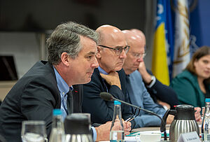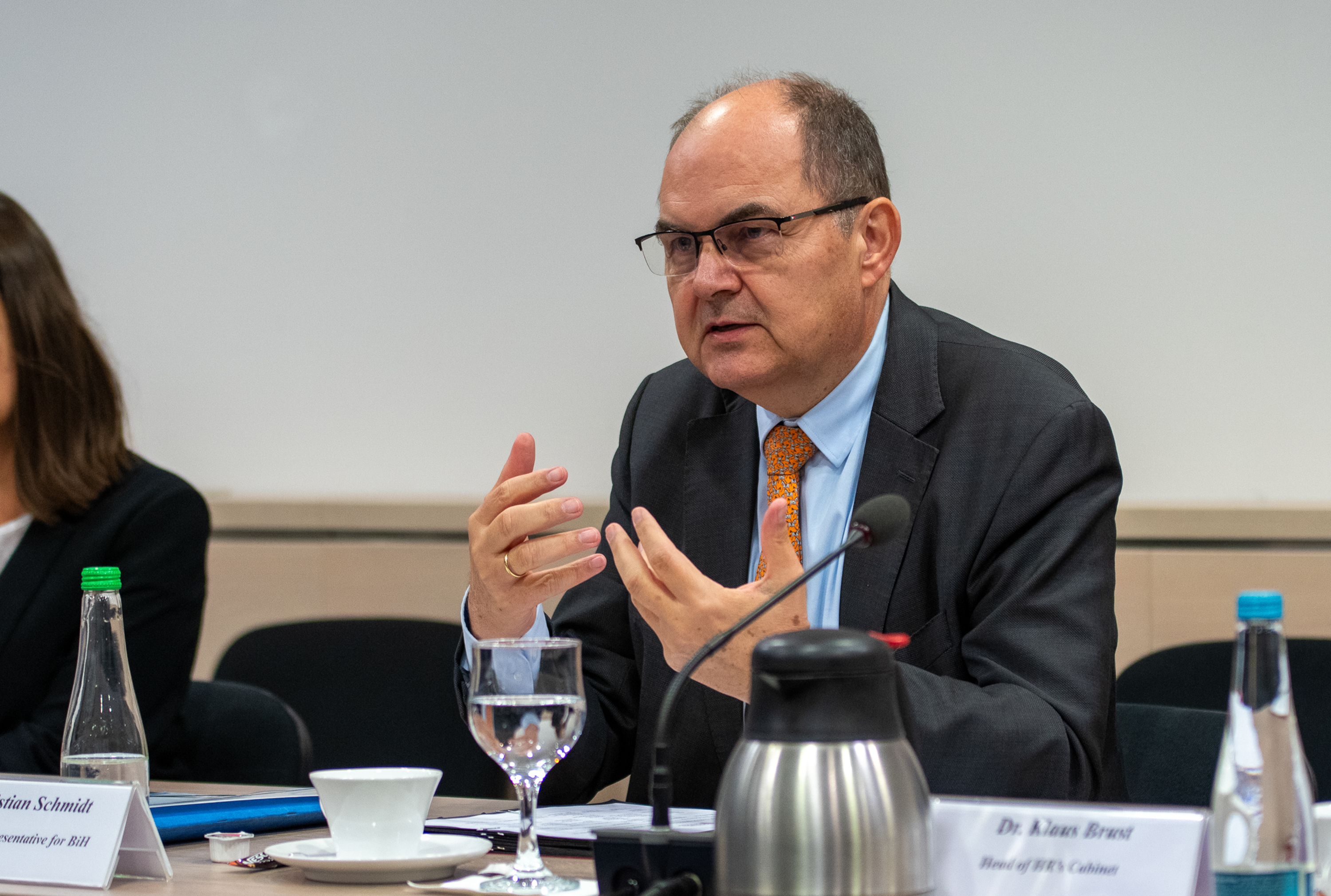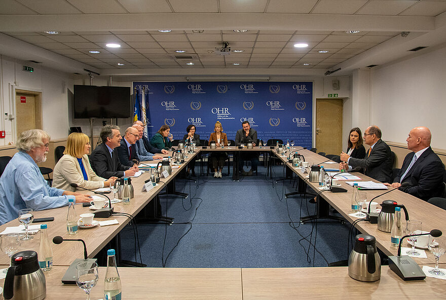 Im Konferenzraum des „Office of the High Representative“ (OHR) traf sich die Gruppe mit Christian Schmidt, der von der diplomatischen Referentin Neira Ramic und dem Leiter des Kabinetts, Klaus Brust, begleitet wurde.