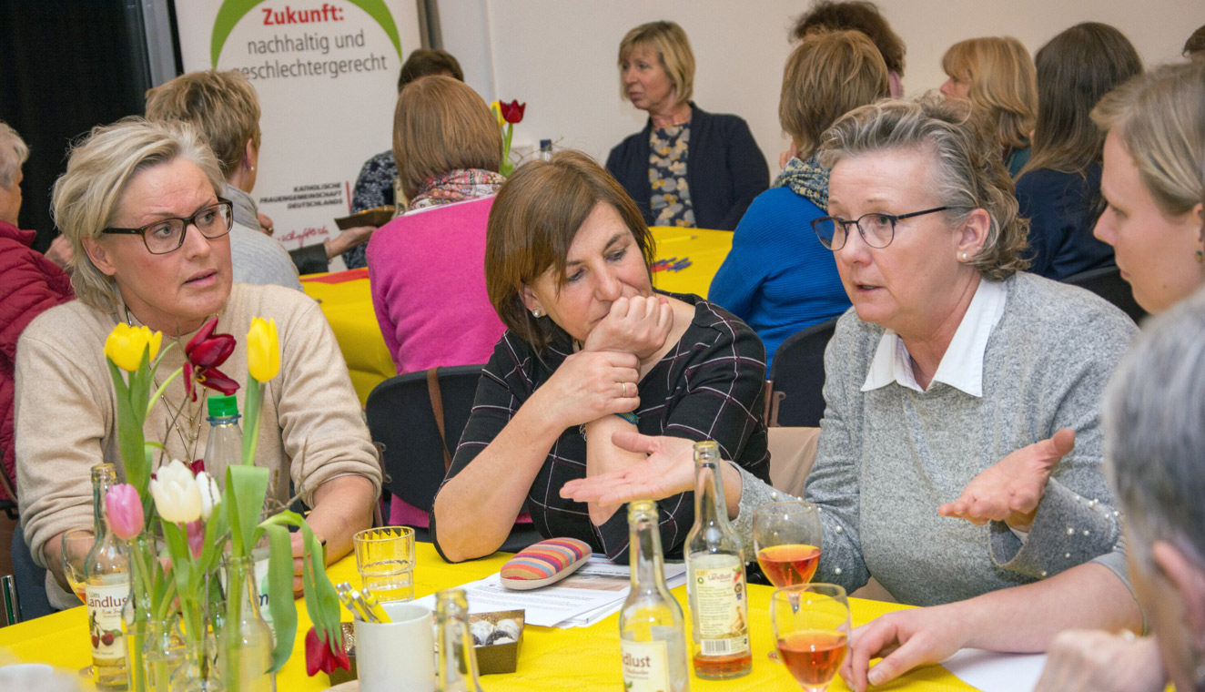 Bei einem ‚worldcafe‘ stand der Austausch im Vordergrund. „Das haben wir gar nicht gewusst“ stellte eine Teilnehmerin fest, als Vorwerk von Anfeindungen berichtete, denen Kinder von Landwirten in Schulen beim Thema Nachhaltigkeit und Umwelt immer wieder ausgesetzt sind. „Mit Schuldzuweisungen kommen wir aber nicht weiter“, machte Zumbrägel deutlich. Landwirtinnen und Verbraucherinnen sollten mehr Kontakt untereinander suchen, um Gemeinsamkeiten über einen verantwortlichen Umgang mit natürlichen Ressourcen zu finden, waren sich die Frauen einig. Schließlich benötige eine Produktion, die auf Nachhaltigkeit der Ressourcen angelegt sei, höhere Erlöse. Als Verbraucherinnen signalisierten die kfd Frauen ihre Bereitschaft, für nachhaltige Produkte mehr zu zahlen. „Wir müssen der jungen Generation zeigen, wie wertvoll und gut unsere Lebensmittel sind“, meinte Gronemeyer.