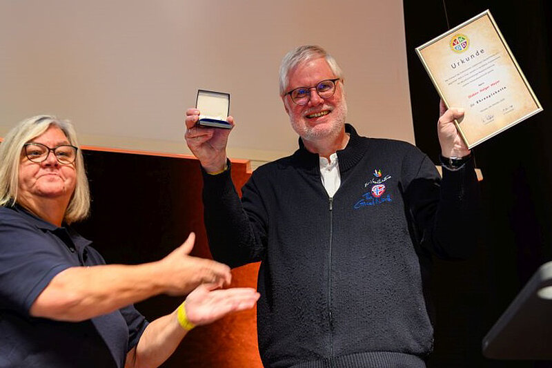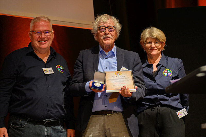 Zwischen den Programmpunkten sorgte der gehörlose Magier Fralau mit verblüffenden Tricks für Unterhaltung. Weitere Ehrungen rundeten den Festtag ab: Hannelore Rogge, Ehefrau des langjährigen Vorsitzenden Alfons Rogge, erhielt die Ehrenplakette für ihre Unterstützung und zahlreiche Beiträge zu Veranstaltungen. Holger Meyer aus Cloppenburg, seit über 13 Jahren Redaktionsleiter der Zeitschrift epheta und Verantwortlicher für die VKGD-Webangebote, wurde für sein großes Engagement ausgezeichnet. Der Verleger Karlheinz Löffel aus Lahr im Schwarzwald, der epheta fast ein halbes Jahrhundert herausgab, erhielt ebenfalls die Ehrenplakette. Auch Ludger Kreienborg, langjähriger Autor der Kolumne Sozialpolitik aktuell, Prof. Dr. Ulrich Hase und Helmut Vogel wurden für ihren Einsatz für Gehörlose geehrt.