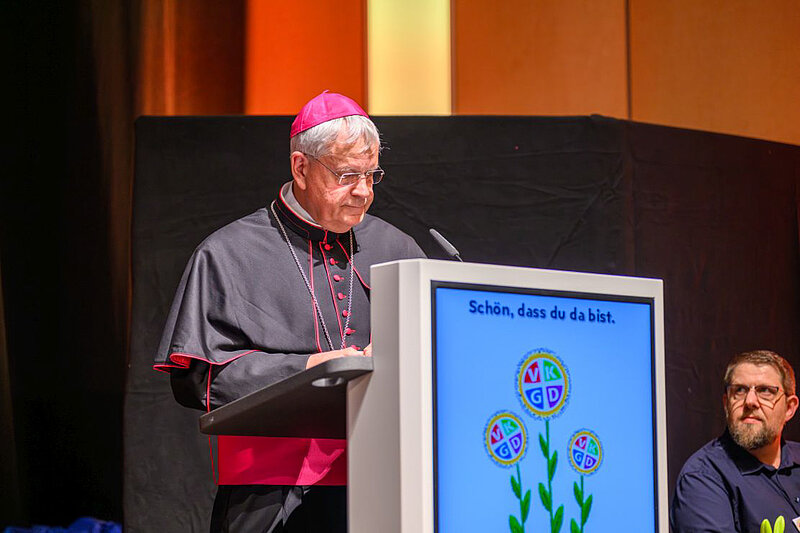 Nach dem Mittagessen folgten Grußworte der Ehrengäste. Bürgermeisterin Angela Stähler überbrachte die Grüße der Stadt Münster. Weihbischof Reinhard Hauke aus Erfurt übermittelte die Glückwünsche der Deutschen Bischofskonferenz und deren Vorsitzendem Bischof Georg Bätzing. Hauke erzählte, wie er durch eine gehörlose Mitarbeiterin im Priesterseminar zur Gebärdensprache und später zur Gehörlosenseelsorge kam. „Ich gebärde auch heute noch in Gottesdiensten“, sagte er und würdigte den Einsatz der vielen Ehrenamtlichen, „die diesen Verband über 100 Jahre hinweg getragen haben“.