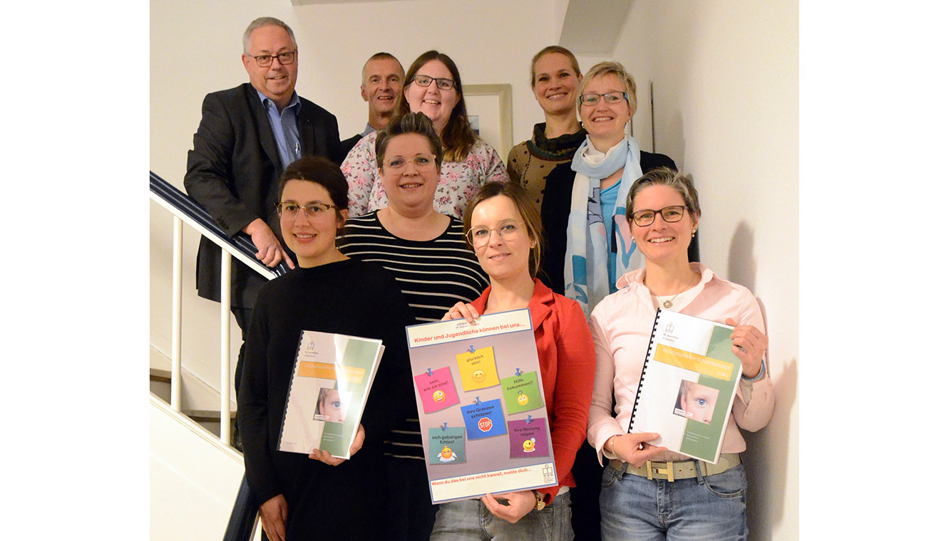 Eine Arbeitsgruppe aus haupt- und ehrenamtlichen Vertretern der Pfarrei St. Laurentius in Warendorf hat mit Unterstützung der regionalen Präventionsfachkraft Doris Eberhardt ein Institutionelles Schutzkonzept (ISK) erstellt: (vorne von links) Ariane Wessels, Lena Hox (Pastoralreferentin), Marion Bause, (2. Reihe von links) Jutta Wittkamp und Heike Wiesmann (Verbundleitungen), (hinten von links) Pfarrer Peter Lenfers, Thomas Jakisch (Kirchenvorstand), Imke Scholle (Messdienerleiterrunde) und Doris Eberhardt. Nicht auf dem Bild: Ulrich Hagemann (Pastoralreferent) und Thomas Sokolowski (Einrichtungsleitung Jakobuskindergarten).