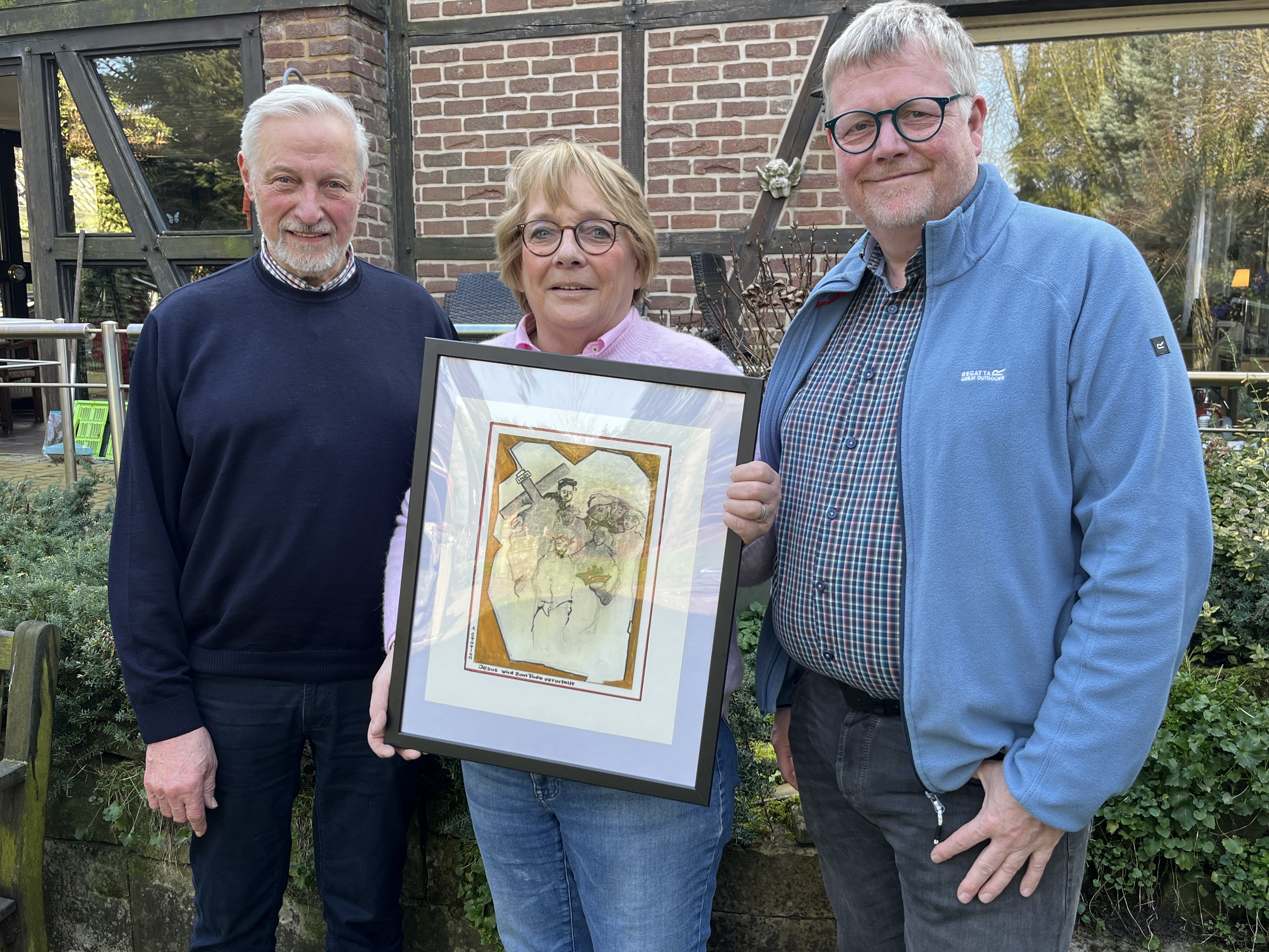 Bereits 2023 waren die Werke während der Passionszeit unter dem Leitwort „Unser aller Kreuzweg“ in der Marienkirche in Ahlen zu sehen. Nun gehen sie auf Reise nach Münster. Vermittelt wurde die Ausstellung durch Heinz Reinhard, ehrenamtlich engagiert in der Pfarrei St. Bartholomäus in Ahlen und Freund der Familie Hartmann. Er stellte auch den Kontakt zum Kirchenfoyer her.