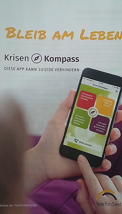 Erleichtert und auch etwas stolz zeigte sich Rita Hülskemper, Leiterin der TelefonSeelsorge Münster und Mitinitiatorin der App „Krisenkompass“: „Wir haben ein neues digitales Angebot zur Suizidprävention entwickelt, das ab sofort zum Download bereitsteht.“ Die App richtet sich besonders an die Gruppe, die häufig von suizidalen Krisen betroffen ist: Jugendliche und junge Erwachsene bis 29 Jahre. Diese sind mit 23 Prozent besonders zahlreich vertreten unter den rund 100.300 Personen, die im vergangenen Jahr deutschlandweit die TelefonSeelsorge mit suizidalen Gedanken kontaktiert haben. „Und da junge Menschen mit ihren Themen vor allem digital unterwegs sind, ist die App ein anonymes Angebot, das hoffentlich von vielen genutzt wird und helfen kann“, erklärte Hülskemper weiter.