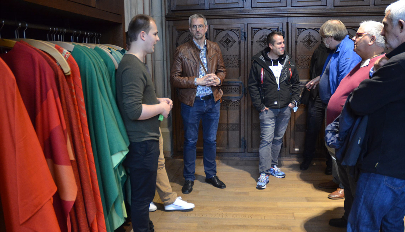 Bild oben: In der Domsakristei präsentierte Maximilian Fölix seinen Kolleginnen und Kollegen anderer Kathedralkirchen die liturgischen Gewänder. Bischöfliche Pressestelle / Anke Lucht