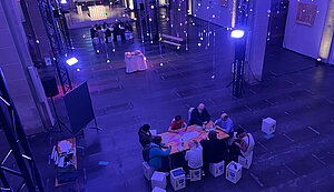 Doch nicht nur am Abend, auch tagsüber lädt eine Kunstinstallation zum Kommen, Verweilen und Bleiben im Kirchenraum ein. Vormittags runden Angebote für Kinder und Jugendliche in Kooperation mit den Kindertagesstätten und den Schulen die Woche ab.