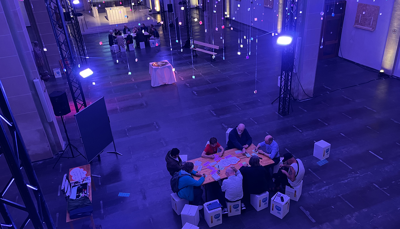 Den Auftakt macht am 8. September eine Gesprächsrunde zum Thema Migration. Fachleute aus Caritas und Sozialarbeit kommen ins Gespräch mit den Menschen in Oelde – mitten im Kirchenraum. Am 9. September wird es festlich: Beim „White Dinner“ verwandeln Kerzenlicht und weiße Kleidung den leeren Kirchenraum in einen großen Gemeinschaftstisch. Jede und jeder bringt etwas zu essen mit – am Ende entsteht ein Buffet, das alle verbindet. Am nächsten Abend, 10. September, dann der Kontrast: „Leere Kirche – voll Musik“ heißt das Konzert des Ensembles Musikus, das den hallenden Raum mit Klängen erfüllt, gefolgt von einem Filmabend. Am Donnerstag erobern zuerst die Kinderkirche und später der Kirchenchor der Cappella Johannea mit einer Einladung an alle zum gemeinsamen Singen in einer offenen Chorprobe die Kirche.