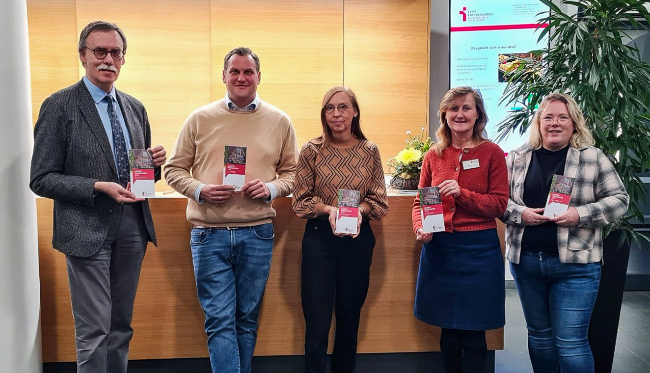 Vor der Rezeption der LVHS empfängt Sie das Pädagogen-Team und präsentiert das neue Jahresprogramm des Bildungshauses für 2026 (von links nach rechts): Direktor Michael Gennert, Maximilian Hermes, Dorothee Tiemann, Karin Ziaja und Susanne Wittkamp.
