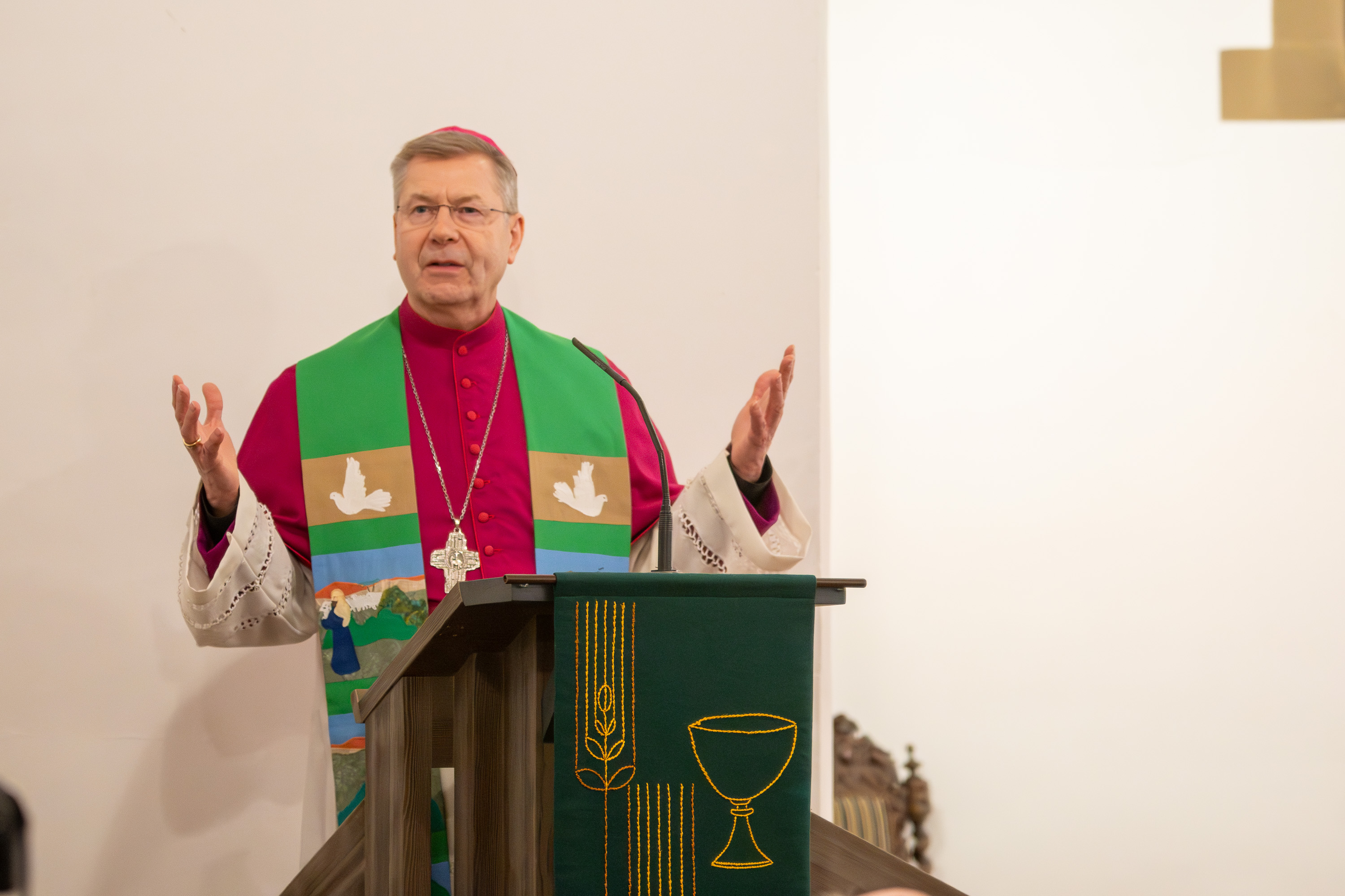 In seiner Predigt berichtete Weihbischof Zekorn eindrücklich von Begegnungen mit Menschen in der Ukraine. Besonders bewegt habe ihn ein Besuch in einem Ferienlager für Kinder von gefallenen oder im Krieg stehenden Soldaten, das durch kirchliche Unterstützung mitfinanziert wird. Viele der Kinder hätten dort erstmals offen über ihre Angst und ihre Trauer sprechen können.