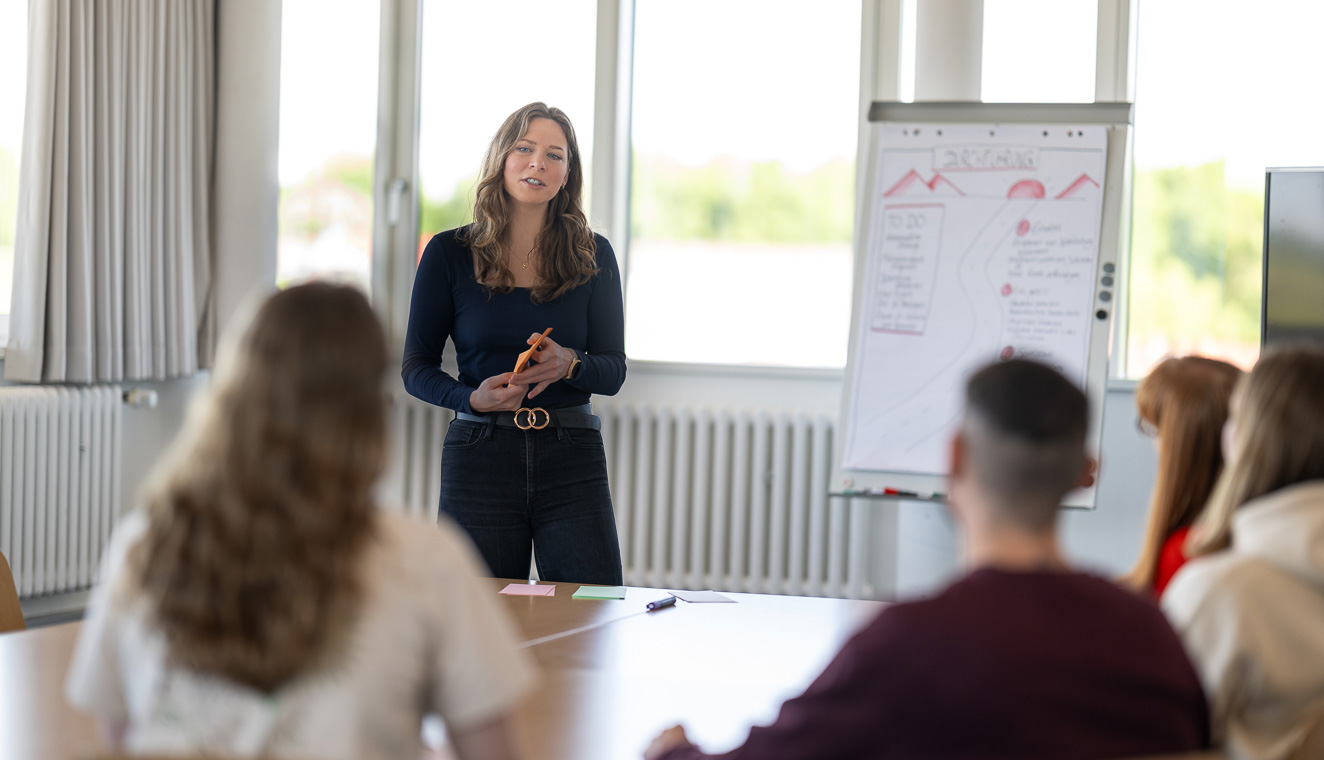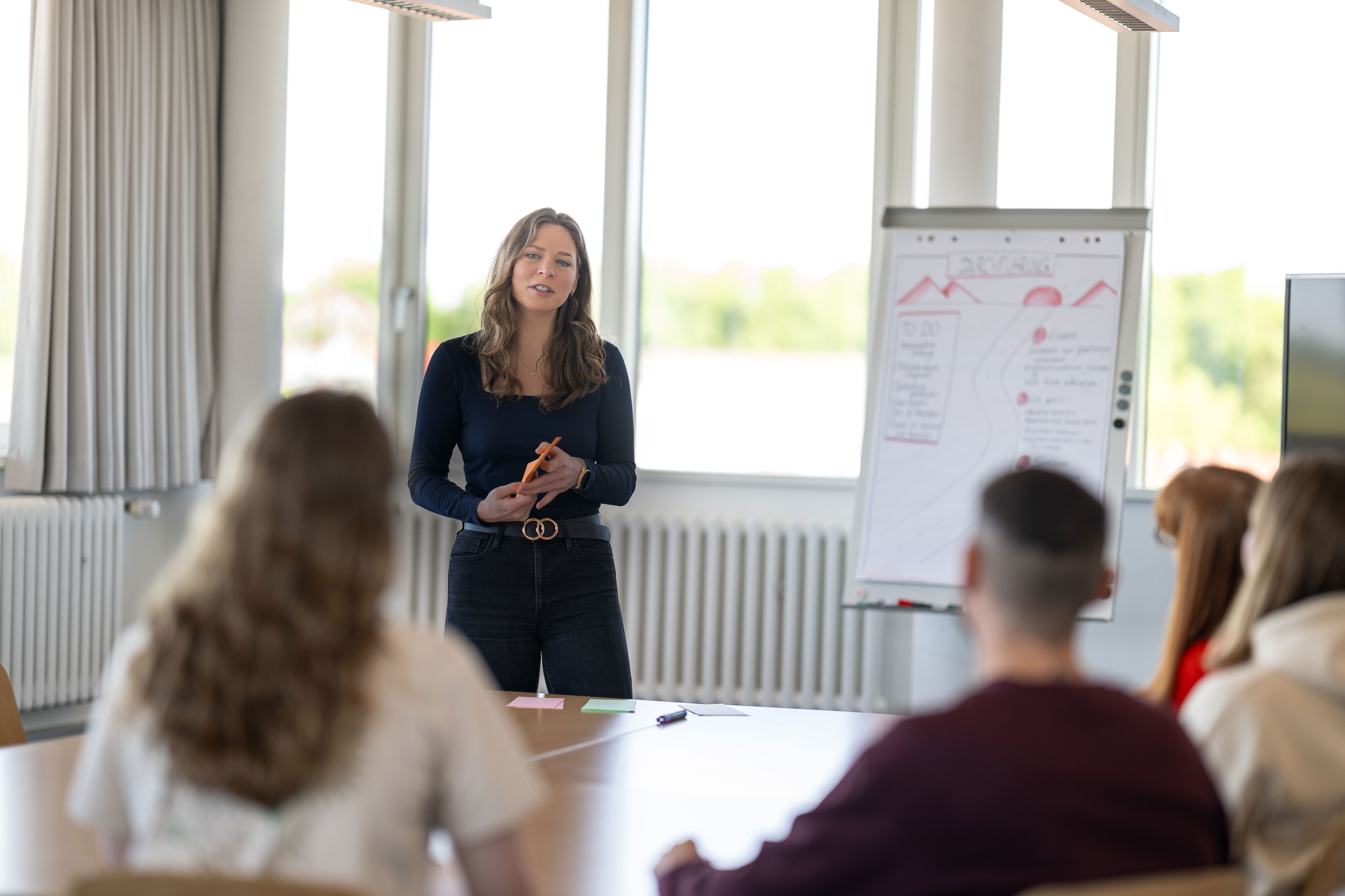 Für die Arbeitgeberkampagne „Dank dir!“ des Bistums Münster wurde Anna David vorgeschlagen, weil sie im Team mitzieht, motiviert und sich mit Begeisterung einbringt. „Wahrscheinlich war ich einfach zu positiv“, sagt sie lachend. Beim Shooting erklärte sie Methoden, mit denen sie ihre Gruppen schult – etwa Reflexionsbälle in Form von Kronen oder Glühbirnen, die symbolisch für Highlights oder Erkenntnisse stehen. „Zwischendurch kam immer wieder jemand von der Maske und puderte mein Gesicht, während ich gerade mitten im Satz war – ein bisschen wie bei der Tagesschau, nur lustiger“, erzählt sie mit einem Schmunzeln.