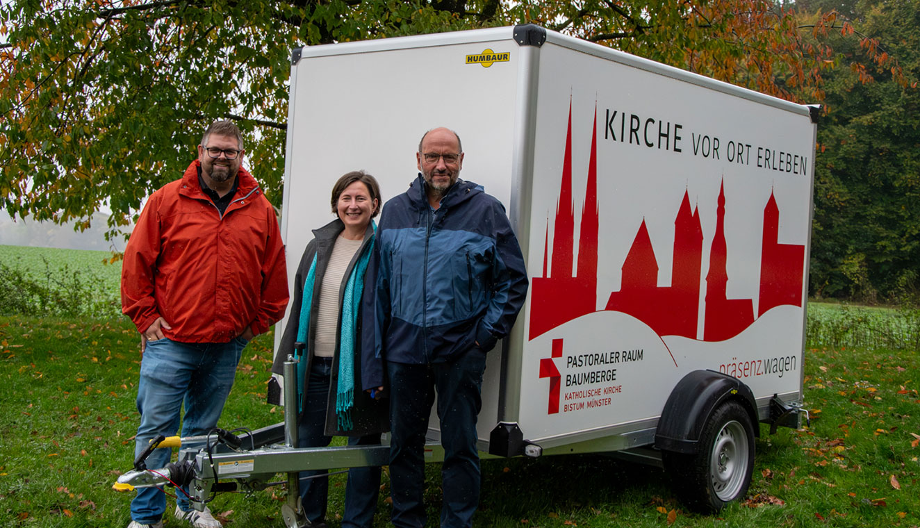 Am Anfang stand eine Idee. Jetzt ist sie Wirklichkeit geworden. Die Aktiven aus dem Pastoralen Raum Baumberge, in dem die Pfarreien in Nottuln, Billerbeck, Rosendahl und Havixbeck zusammenarbeiten, haben ihr Projekt „präsenz.wagen – Kirche vor Ort erleben“ realisiert. Damit gehen sie neue Wege. Ihr Ziel: kirchliche Angebote aus den traditionellen Räumen heraus in den Alltag der Menschen bringen und so neue Begegnungsräume für Glauben und Gemeinschaft schaffen, das Gemeinschaftsgefühl zu stärken und den Pastoralen Raum Baumberge sichtbarer machen.
