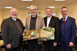 v.l. Offizialatsrat Bernd Winter, Stefan Decker, Weihbischof Wilfried Theising und Dr. Markus Wonka.