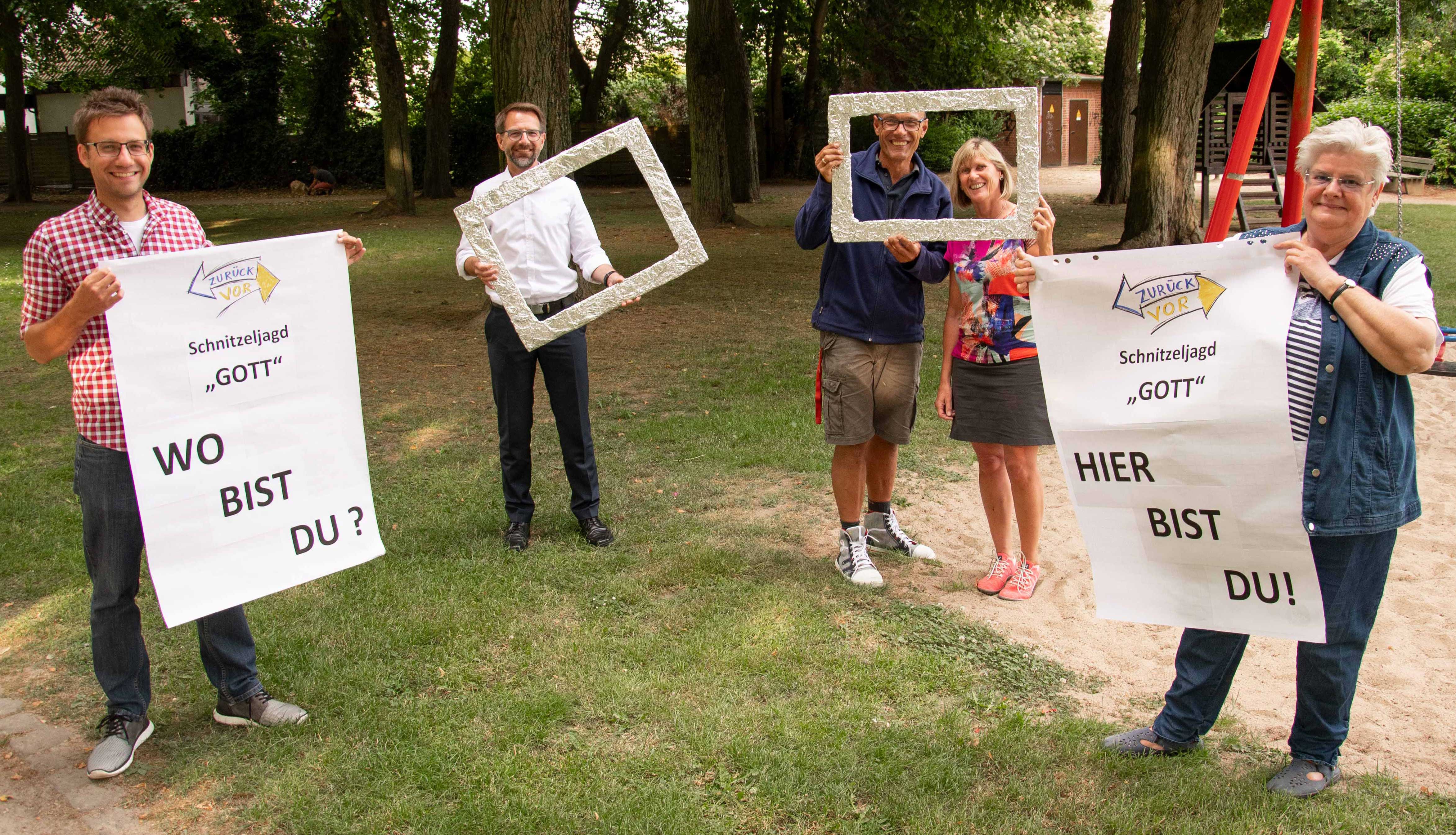„Schnitzeljagd ,Gott‘“ haben die Organisatoren den ungewöhnlichen Gottesdienst genannt, der von der Alten Kirche durch den Willibrordpark, vorbei am alten Friedhof zur Pfarrkirche in Kellen führt. Es gibt ausgedruckte Texte, einen Impuls mit glänzenden Bilderrahmen und ein Video, das die Betrachter zum Nachdenken einlädt. Dabei steht zunächst die Frage „Wo bist Du?“ im Raum, die über ein „Hier bist Du?!“ zum „Hier bin ich!“ geleitet wird. Nach Angaben von Mitorganisator Ludger Hufschmidt ist der außergewöhnliche Gottesdienst „für jedes Alter“ geeignet. Etwa 20 bis 30 Minuten sollte man insgesamt einplanen. Angekündigt haben sich schon angehende Firmlinge, die sich mit dem Gottesdienst auf den Weg zur Firmung machen möchten, zu der sie sich an dem Abend anmelden können.
