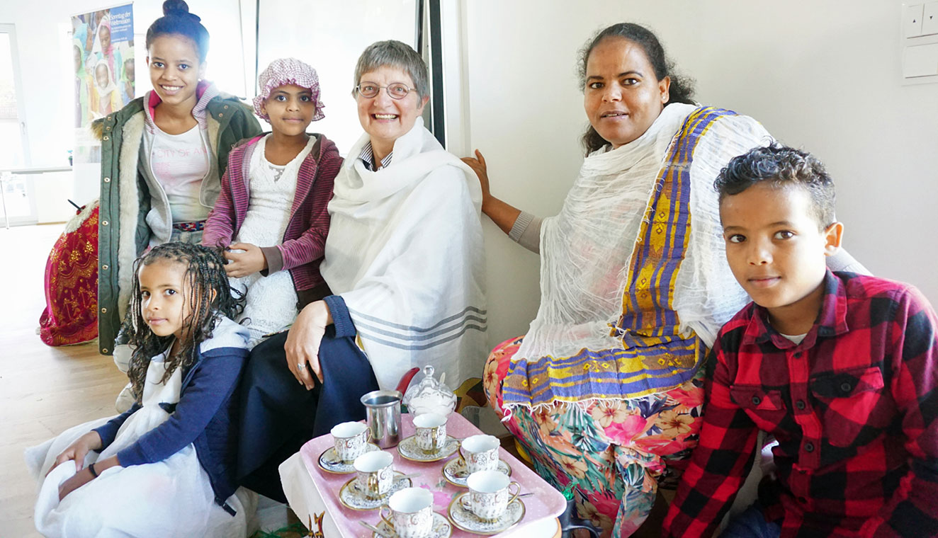 Bei der Begegnung im neuen Pfarrheim der Gemeinde St. Maria Magdalena mit Schwester Rita Schiffer lud die äthiopischen Familie Ghebrehiwet zu einer eine äthiopischen Kaffee-Zeremonie ein. Fotos: Bischöfliche Pressestelle/Anke Gellert-Helpenstein