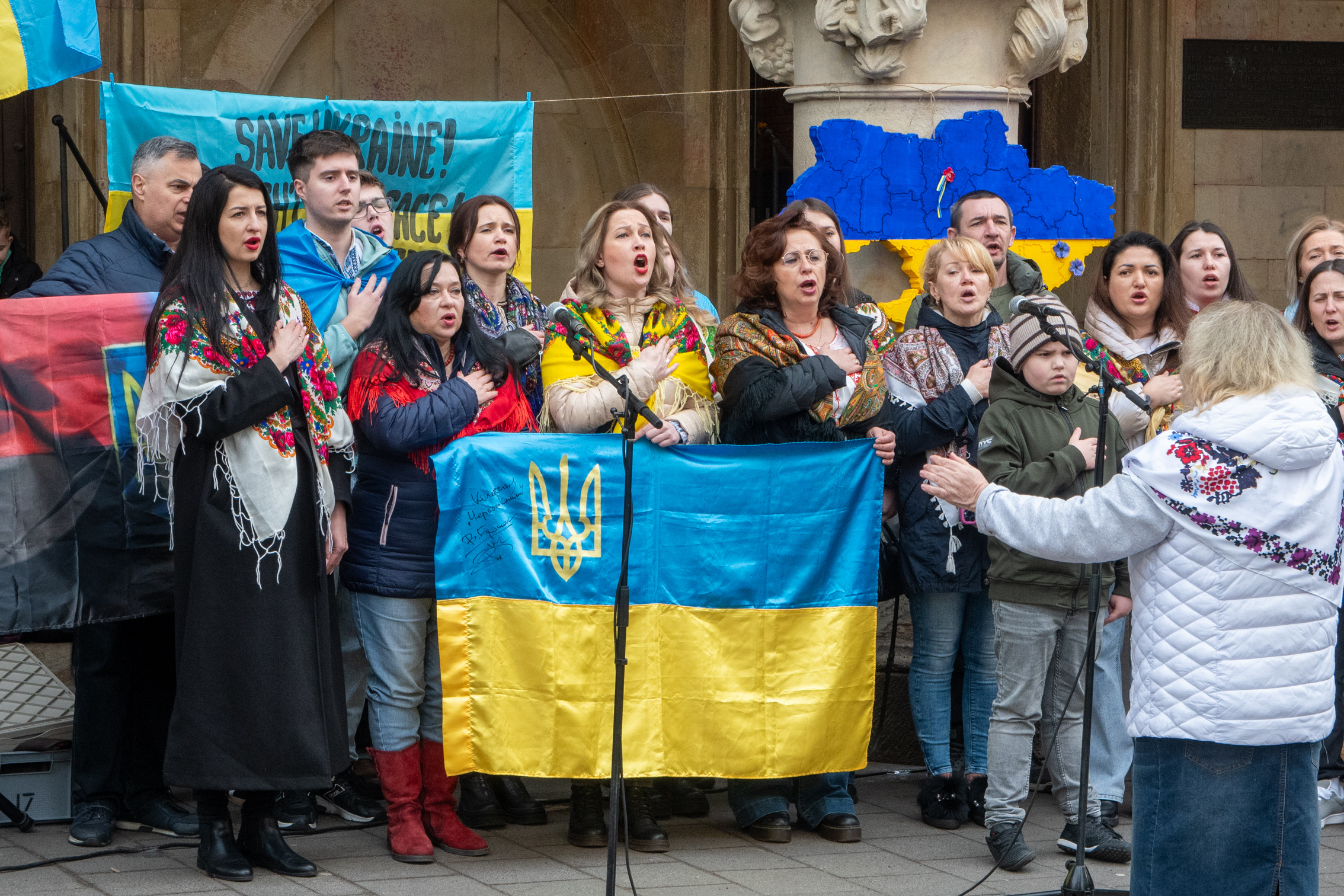 Dort startet ab etwa 12 Uhr eine Kundgebung mit musikalischer Begleitung: Der ukrainische Chor „Tscherwona Kalyna“ aus Münster, die Tanzgruppe „Ptashky“ sowie das Duett „Religimus“ gestalten das Programm.