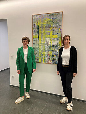 Insbesondere die intensive Beschäftigung mit Gerhard Richters expressiv farbigen abstrakten Gemälden aus den 1980-er und 1990-er Jahren hat die Künstlerin inspiriert, ihren eigenen malerischen Weg im Spiel mit Farbintensität, -transparenz, -dynamik, mit Farbräumen und Proportionen zu entwickeln. Die zumeist intensiv farbigen großformatigen Acrylbilder ebenso wie nur in Schwarz und Weiß gestaltete Arbeiten sowie einige Arbeiten auf Papier offenbaren und verschleiern zugleich ihren komplexen Entstehungsprozess.