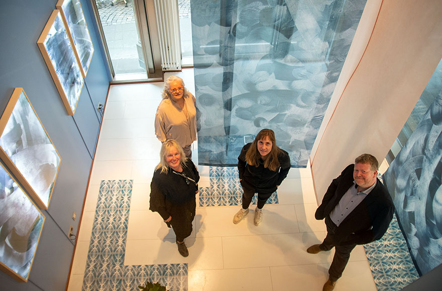 Rupert König, Leiter des Kirchenfoyers, und Gabriele Sobke sowie Karin Dame vom Kunstkreis der Einrichtung freuen sich über die erste richtige Ausstellung in den Räumen seit März: „Während der Corona-Pandemie hat die Kunst- und Kulturszene stark gelitten. Wir möchten ein Zeichen setzen und es gerade jungen Künstlerinnen und Künstler ermöglichen, ihre Arbeit in die Öffentlichkeit zu bringen“, sagt König.