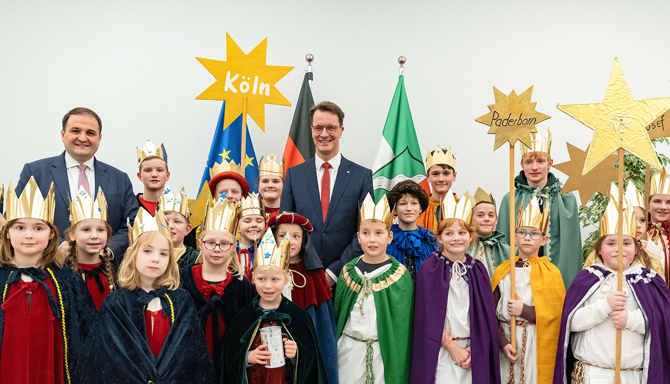 Der Segen für die nordrhein-westfälische Staatskanzlei muss auch 2026 erneuert werden. Zuletzt brachte eine Gruppe Sternsingerinnen der Gemeinde St. Josef aus Moers den Segen zum Amtssitz von Ministerpräsident Hendrik Wüst.