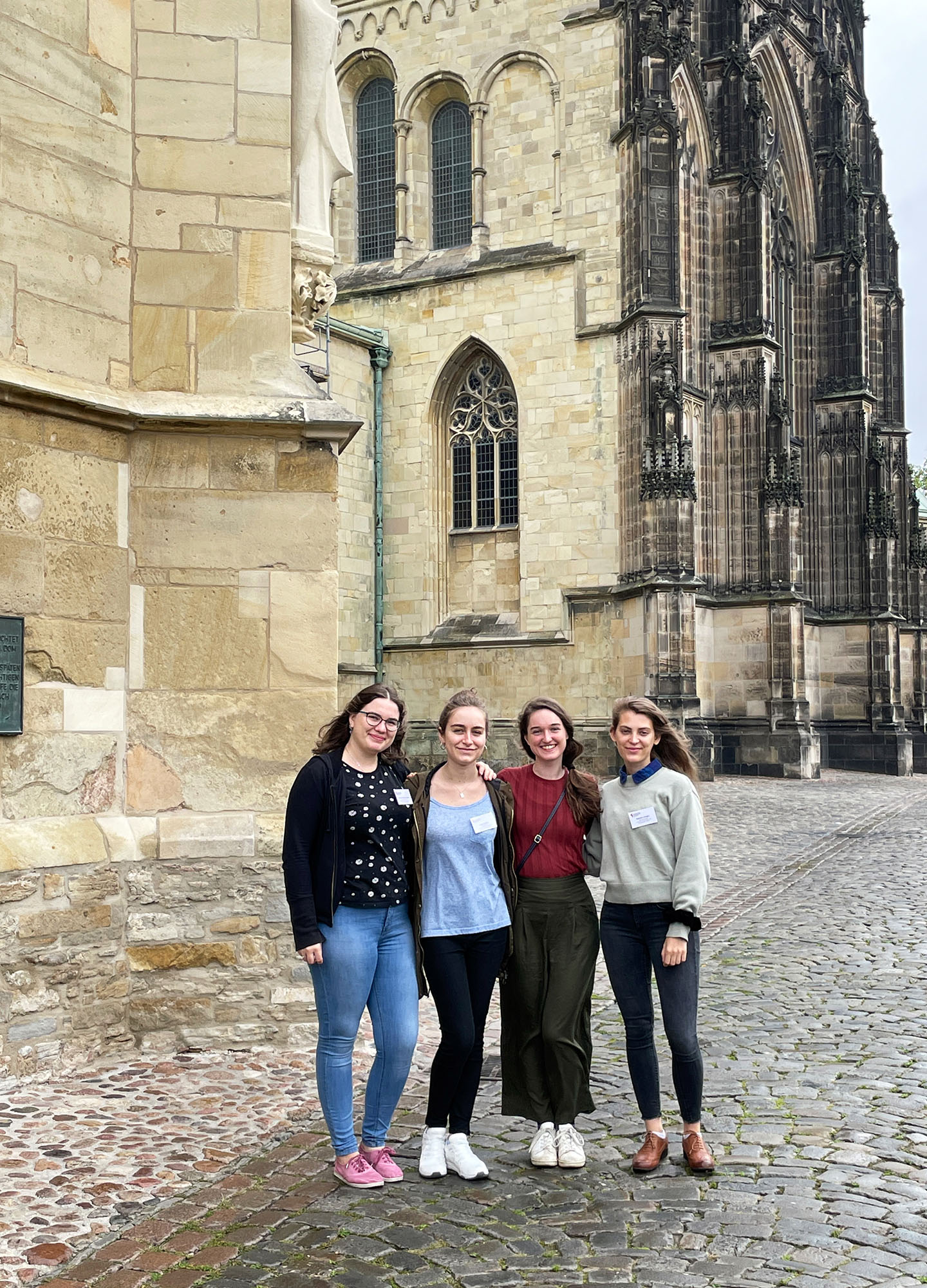 Für ihren Aufenthalt in Münster sind die vier Frauen im Priesterseminar Borromaeum untergebracht. „Wir fühlen uns sehr wohl und es wird gut um uns gekümmert“, sagt Clarissa Huber. Frei nach dem Wort Communauté, auf Deutsch „Gemeinschaft“, nutzen die Studentinnen die Zeit außerhalb der Führungen für Aktivitäten. „Wir versuchen so viel wie möglich zu sehen und zu erleben“, sagt Rebekka Borges. So sehen sie sich gemeinsam die Stadt und umliegende Orte an, fahren mit dem Fahrrad ins Umland, besuchen Cafés und nehmen Kulturangebote wahr.
