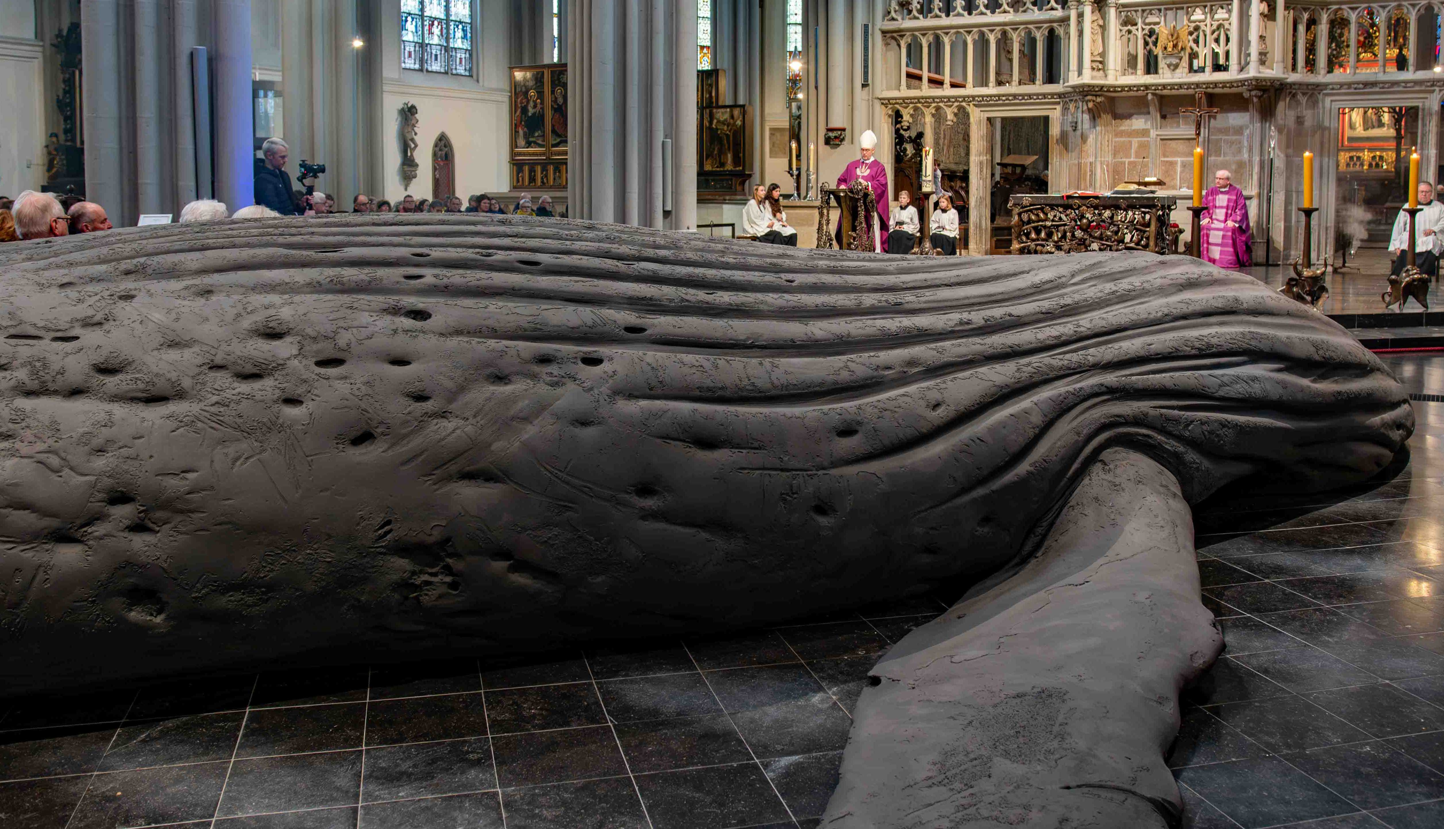 In seiner Predigt verband Lohmann diese Mahnung mit dem Beginn der Österlichen Bußzeit. Die Skulptur werde zu einer Einladung, sich der eigenen Verantwortung zu stellen und sich zu fragen, ob man „die Hände in den Schoß legen“ wolle oder ob man sich von diesem Bild „berühren und zum Handeln anregen“ lasse. Das Kunstwerk eröffne einen Raum der Betrachtung, der die Unterscheidung von Gut und Böse neu herausfordere – im persönlichen Leben wie im gesellschaftlichen Miteinander. Das Kunstwerk im Dom diene dabei als eindrucksvolle Visualisierung des biblischen Auftrags, Leben zu schützen. Der Wal rufe dazu auf, Verantwortung zu übernehmen – „für die geschundene Welt, für die allzu oft vergessene Schöpfung“. Er sei ein „martialisches Bild. Und das ist gut“, denn es stoße notwendige Nachdenklichkeit an. Gleichwohl wisse er, sagte Lohmann, dass das Projekt im Dom nicht jedem gefalle. „Aber“, betonte er, „es geht nicht um Wohlgefallen. Das Kunstwerk soll etwas in den Menschen auslösen, Nachdenklichkeit, Auseinandersetzung und Diskussionen.“
