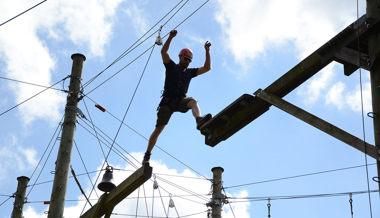 Im Hochseilgarten Dülmen geht es für die Väter und Söhne hoch hinaus.