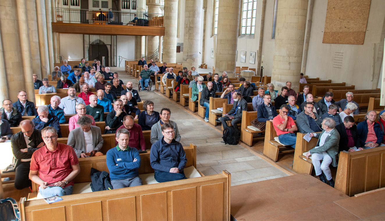 Musikalischer Höhepunkt der Tagung war die Vorstellung der eindrucksvollen Orgelanlage im Billerbecker Dom durch Kantor Lukas Maschke. Orgelbau Fleiter aus Münster-Nienberge, die in diesem Jahr ihr 150jähriges Firmenjubiläum feiert, erbaute die Orgel zwischen 2009 und 2014. Maschke spielte Werke von Bach, Mozart, Saint-Saens sowie Franz Liszts beindruckende Monumentalfantasie „Ad nos, ad salutarem undam“ am viermanualigen Spieltisch im Kirchenschiff und begeisterte Fachpublikum und Gäste mit seinem virtuosen Spiel.