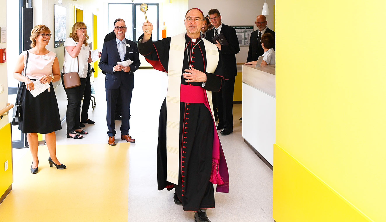 Wilfried Jacobs, Vorsitzender der Katholischen Karl-Leisner-Trägergesellschaft, betonte in seiner Festrede zum Jubiläum des St.-Antonius-Hospitals die Bedeutung der katholischen Trägerschaft: „Unsere Trägergesellschaft und unser Klinikum tragen die Konfession im Namen. Und wer die Fahne trägt, muss sie auch richtig beschriften. Daher wir setzen ein Ausrufezeichen dahinter, wann immer wir können: Wir sind ein katholisches Krankenhaus, wir sind ein katholischer Träger. Die Menschen, die sich uns anvertrauen, sollen dies auch spüren! Sie sollen in jedem Moment erfahren, dass Sie bei uns im Mittelpunkt stehen.“